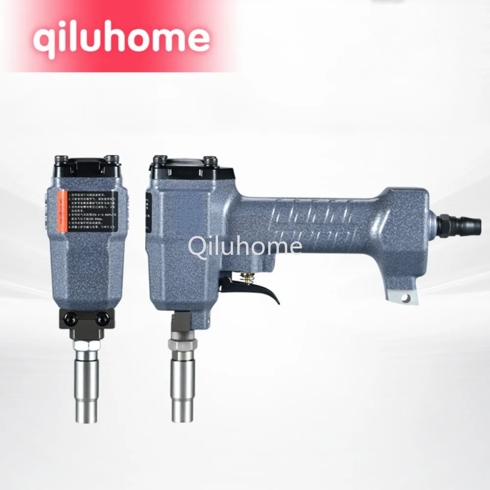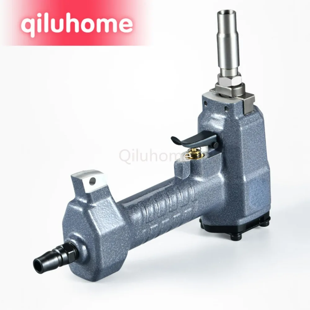 La clavadora neumática con pistola para acabado de molduras está diseñada para proyectos de tapicería y carpintería., Específicamente para fijar clavos decorativos a sofás y muebles de cuero.. Es adecuado para clavos de entre 6,3 mm y 20,3 mm de longitud.. Esta pistola de clavos funciona con aire comprimido., haciéndolo eficiente y fácil de usar para trabajos de acabado precisos. Es una herramienta versátil que se puede utilizar para una variedad de tareas de recorte y acabado., ayudando a agilizar el proceso de proyectos de tapizado y carpintería..