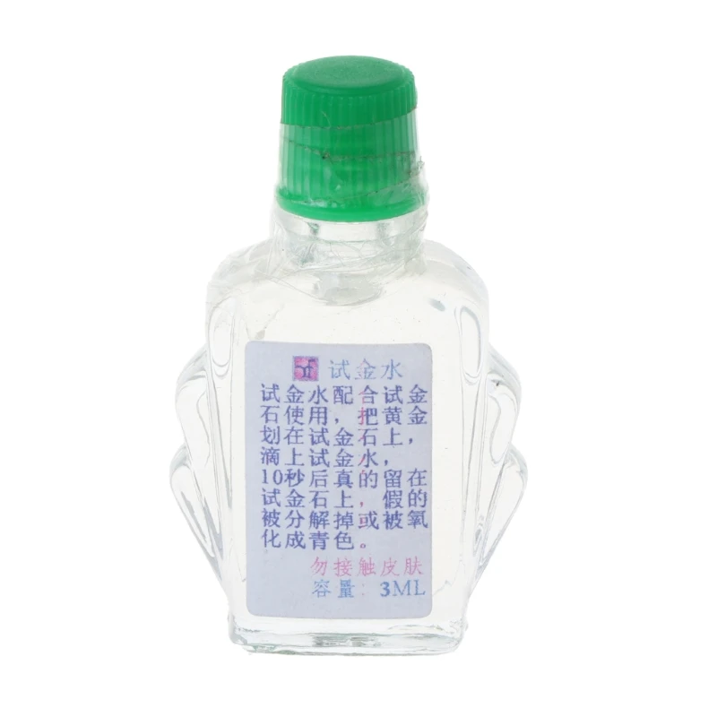Esta solución funciona para probar cualquier oro que crea que es de 10 quilates., 14k, 18k, 22-24k, Plata, y platino puro.