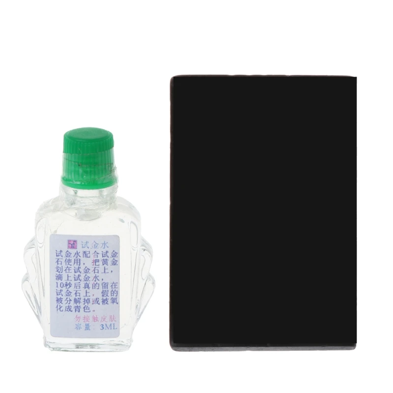 Si quieres probar si tu anillo de oro es real o no., solo necesito frotar piedra negra, y dejar una pequeña muestra en piedra,