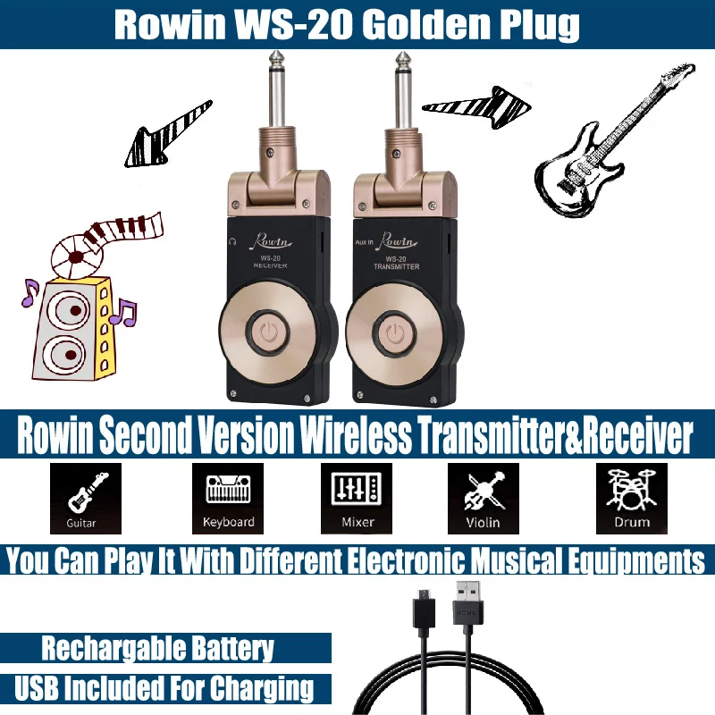 WS-20 Golden Plug (Rowin) Wireless System Guitar Transmission