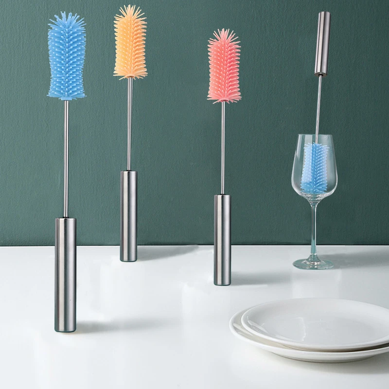 Silicone Milk Bottle Brush Cup Scrubber Glass Cleaner Kitchen Cleaning Tool Long Handle Drink Bottle Glass Cup Cleaning Brush