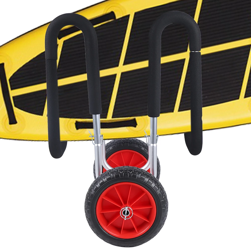 The Surfboard Kayak Cart Paddleboard Dolly Stand-Up Double U Shape Holder features durable wheels that can easily navigate rough terrain, making it perfect for taking your gear from your car to the water’s edge. Its double U shape holder design provides extra stability and security, keeping your equipment in place during transport.