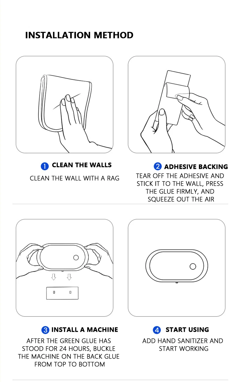 Soap dispenser *1 Cable de carga USB *1, back glue *1, manual *1