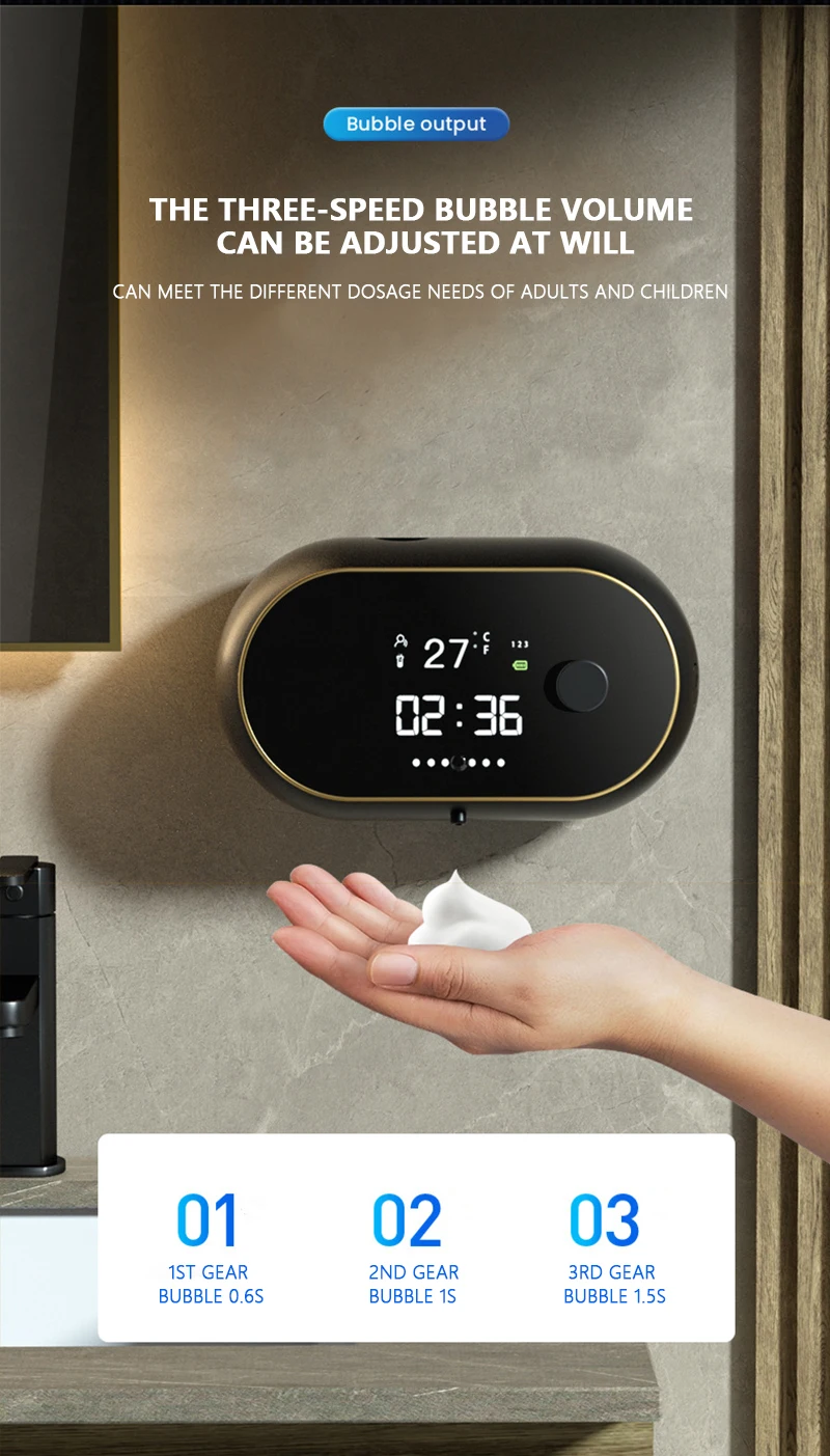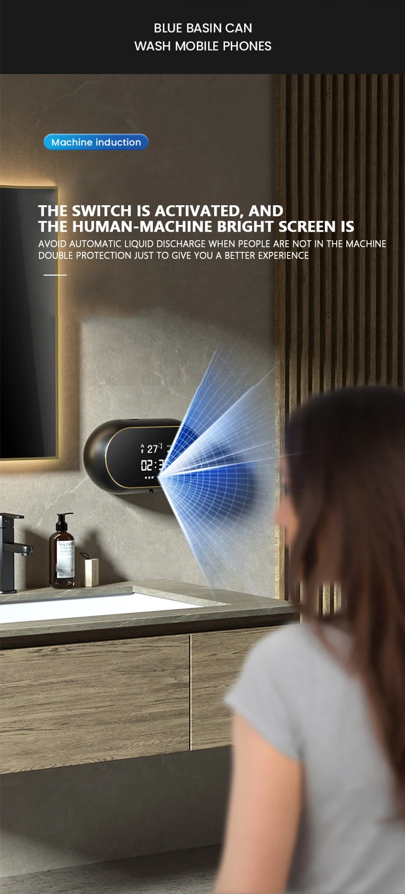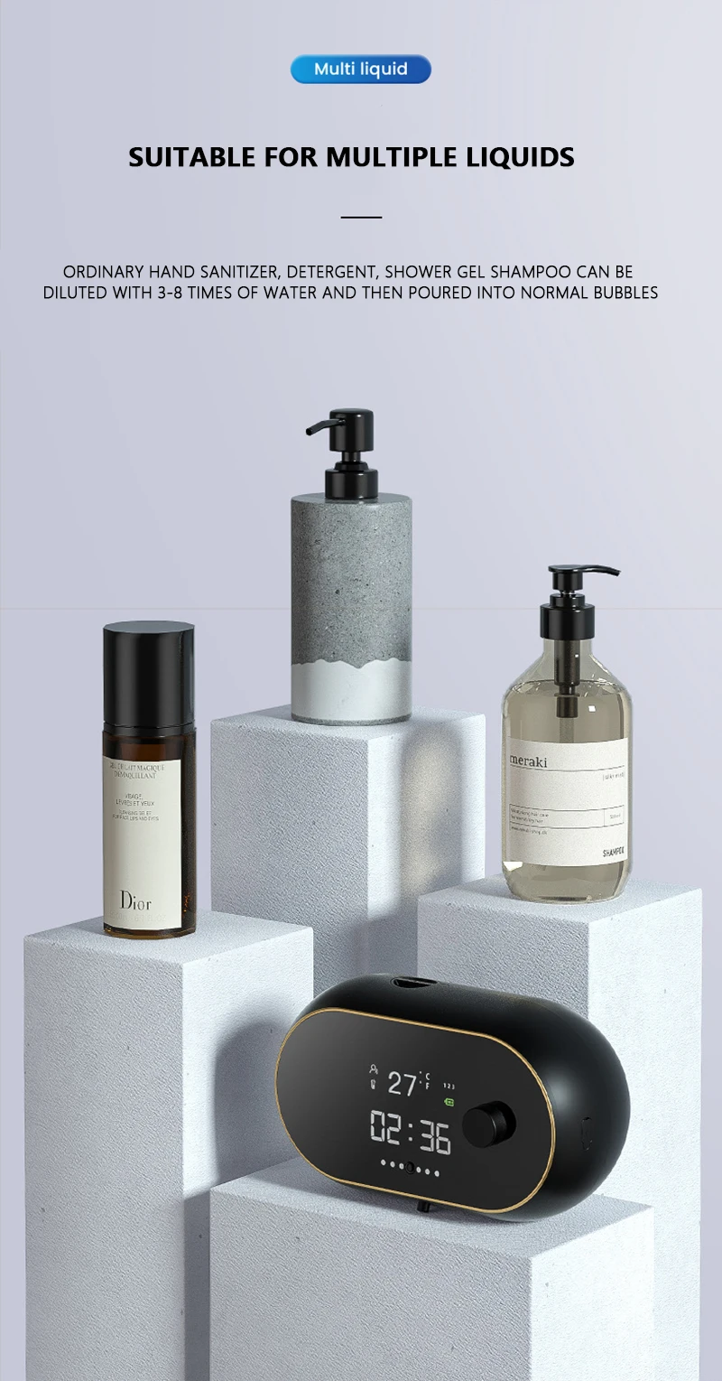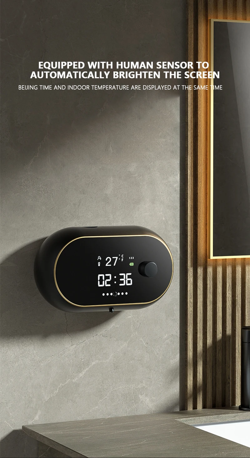 Automatic Foam Soap Dispenser Touchless Sensor USB Charge Foam Machine Time Temperature Display Wall Mount Hand Sanitizer