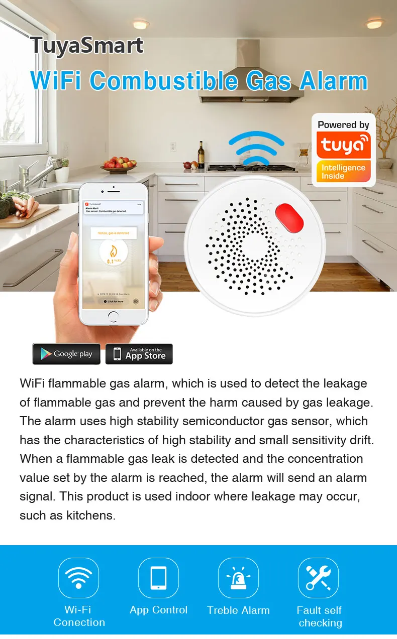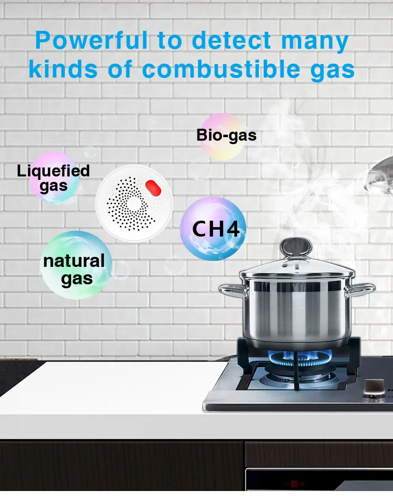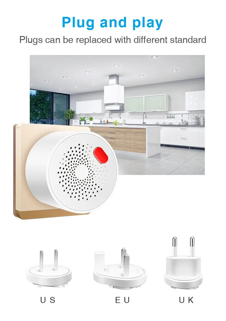 Detector de fuga de gas natural WiFi inteligente,Monitor remoto de la aplicación,pulg en la pared,Sensor inflamable inflamable combustible para GLP/GNL/carbón metano propano butano gases