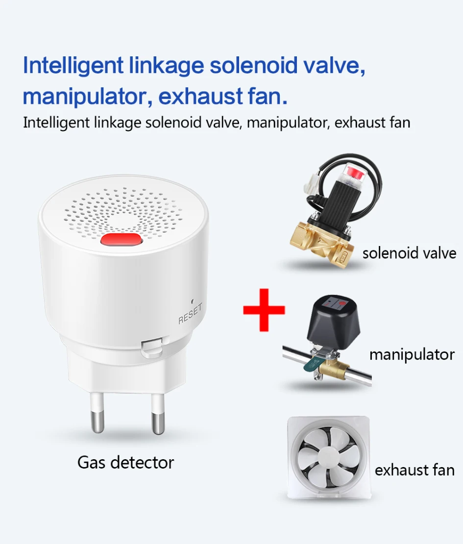 【Enlace】 Se puede vincular con el manipulador de la válvula wifi para monitorear de forma remota la fuga de gas combustible y cerrar la válvula.