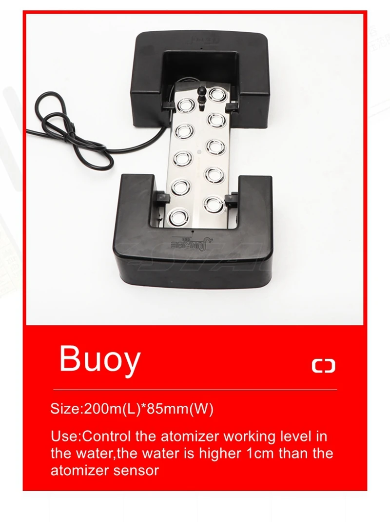 A:The atomizer best working status is under the water with 6-7 cm,if the water is too deep,then need the buoy to make the atomizer in good position