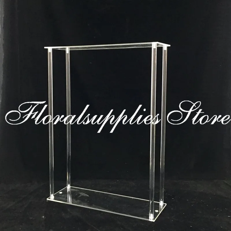 Hecho a partir de acrílico transparente de alta calidad, Este soporte de flores es duradero y resistente, Asegurarse de que su exhibición floral se destaque maravillosamente durante todo su evento. Su diseño moderno y sus líneas elegantes lo convierten en una pieza versátil que puede complementar cualquier tema o estilo de boda.