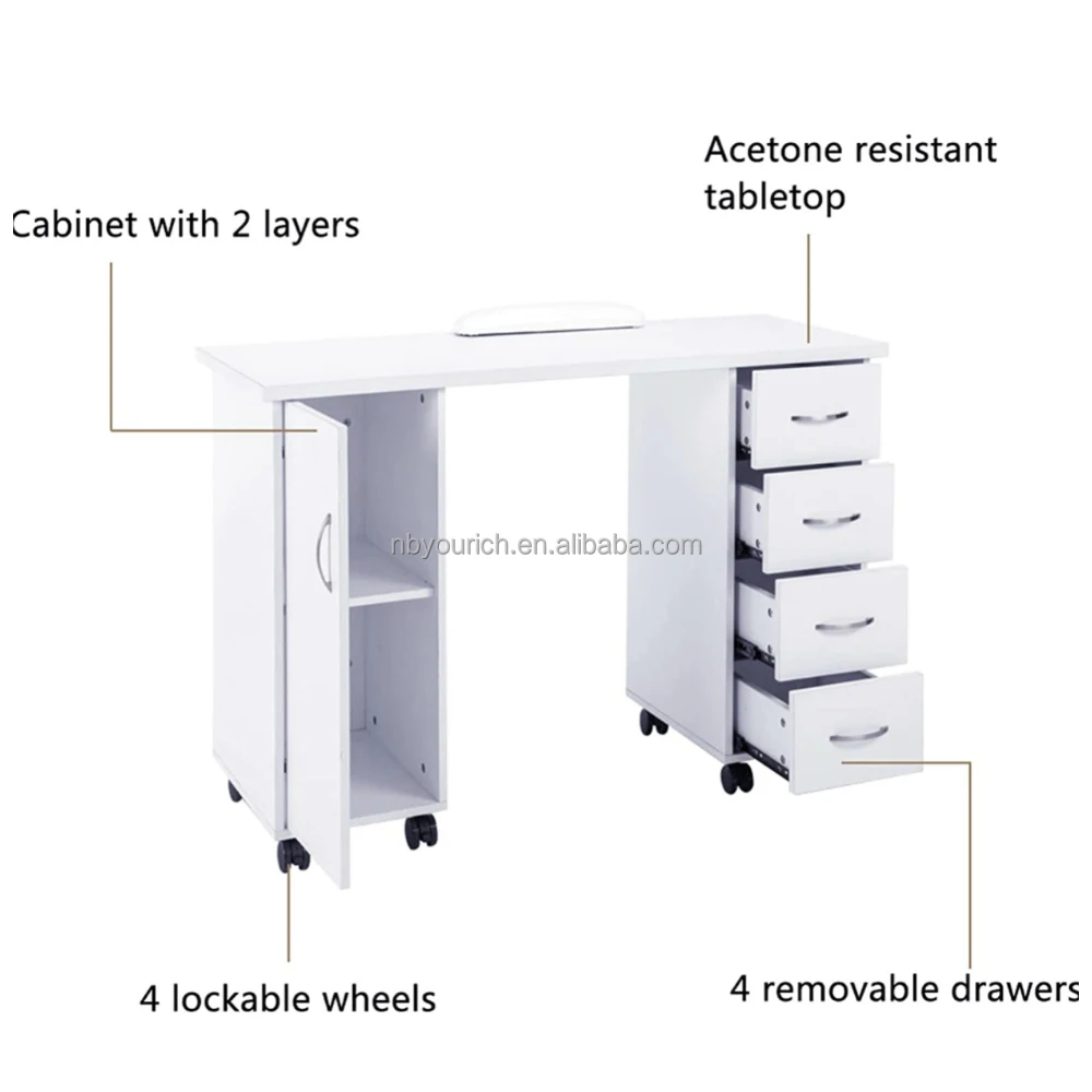 Upgrade your salon with our high-quality wood nail station featuring a built-in fan for a comfortable and efficient manicure experience. This hot beauty salon manicure table is perfect for professionals looking to elevate their workspace with a stylish and functional design. The durable wood construction ensures long-lasting use, while the sleek finish adds a touch of sophistication to any salon setting. Invest in quality with our wood nail station and impress your clients with a sleek and modern manicure station.