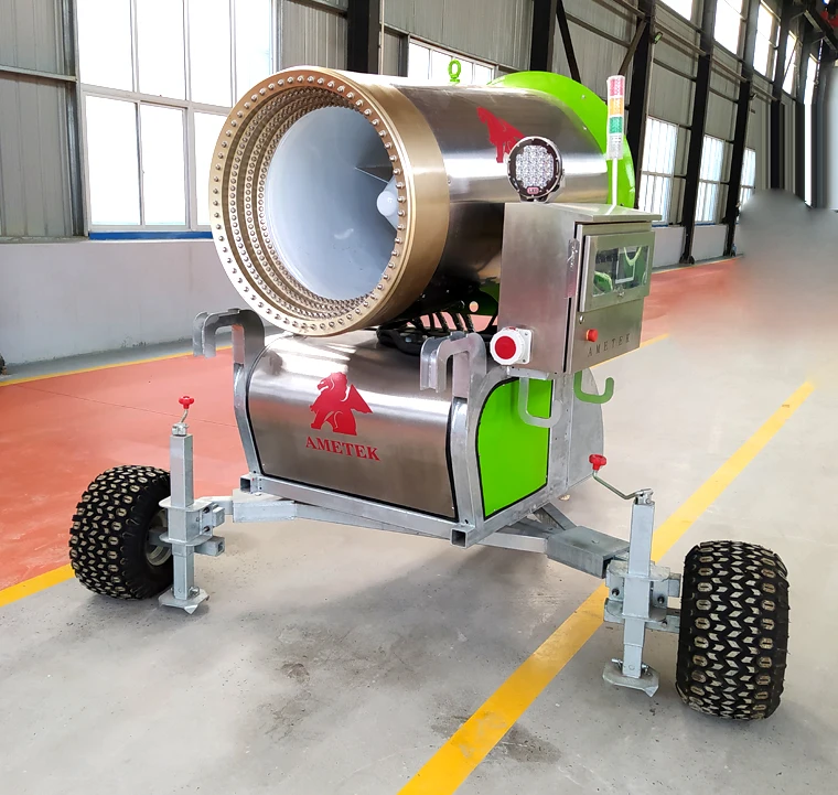 Snow making machine The snow-making machine can freely create snow of different sizes from 10 mm a 0.3 milímetros. Con 0.3 mm de nieve, it is possible to pave snow trails close to natural snow.