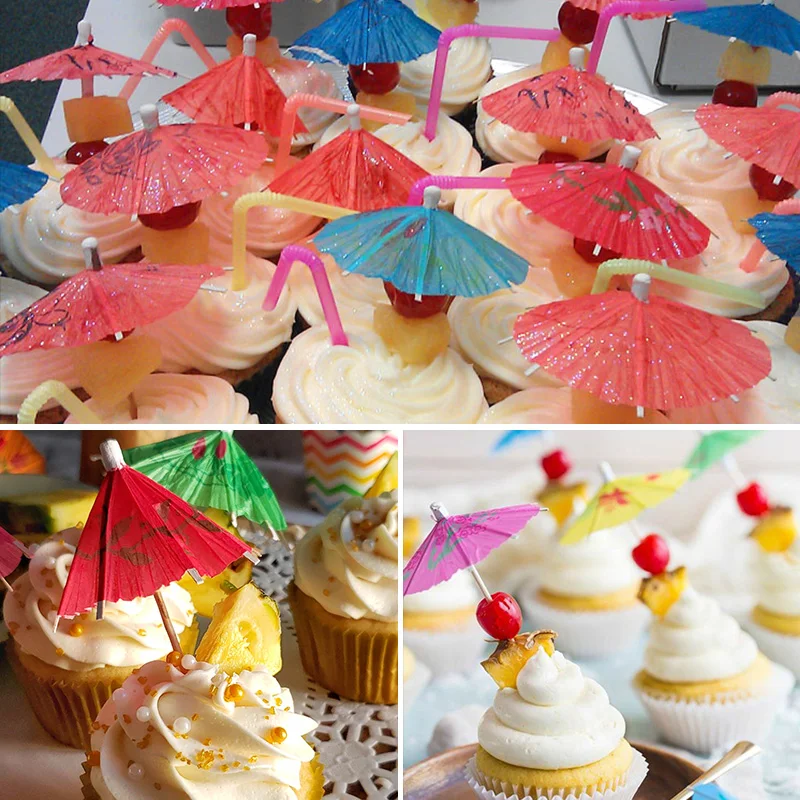 20/30/50PCS Umbrella Cocktail Parasols Buffet Cupcake Food Fruit dentifrise pour le mariage de la plage Décoration de fête d'anniversaire hawaïen