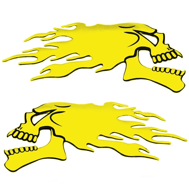 Un ensemble de 2 silver chrome ghost skull head stickers for cars and motorcycles. These 3D decals are great for adding a spooky Halloween theme to your vehicle. They are easy to apply and are perfect for car styling and decoration. The decals are durable and will last a long time on your vehicle. Add a touch of Halloween spirit to your car with these unique and eye-catching stickers.