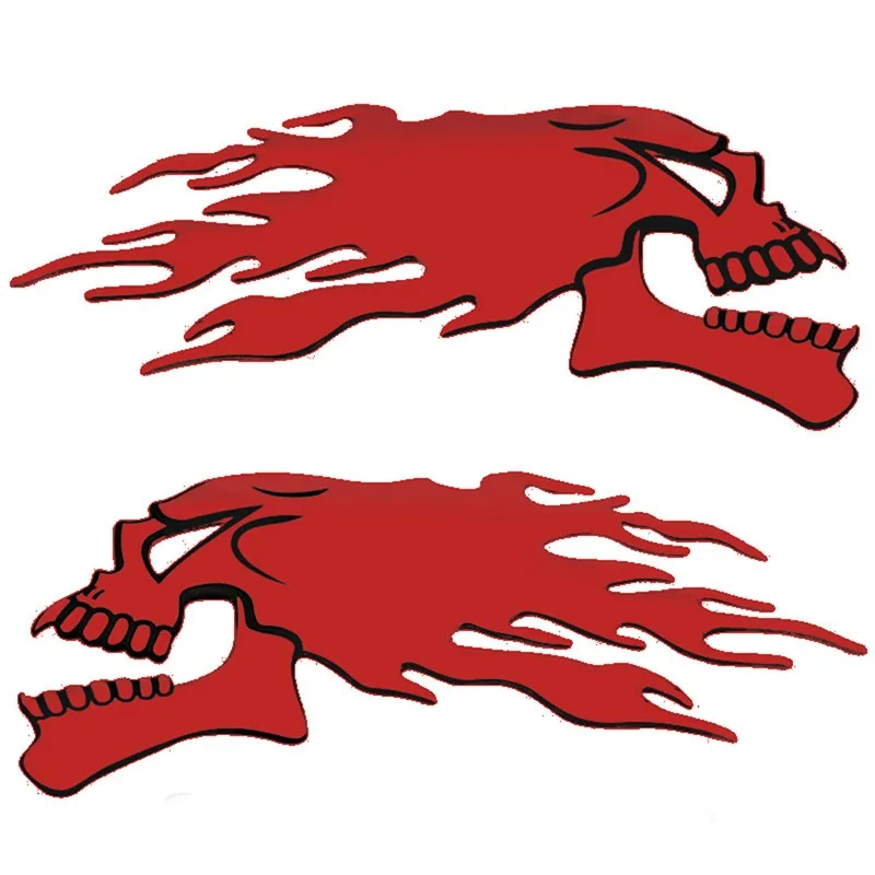 Un ensemble de 2 silver chrome ghost skull head stickers for cars and motorcycles. These 3D decals are great for adding a spooky Halloween theme to your vehicle. They are easy to apply and are perfect for car styling and decoration. The decals are durable and will last a long time on your vehicle. Add a touch of Halloween spirit to your car with these unique and eye-catching stickers.
