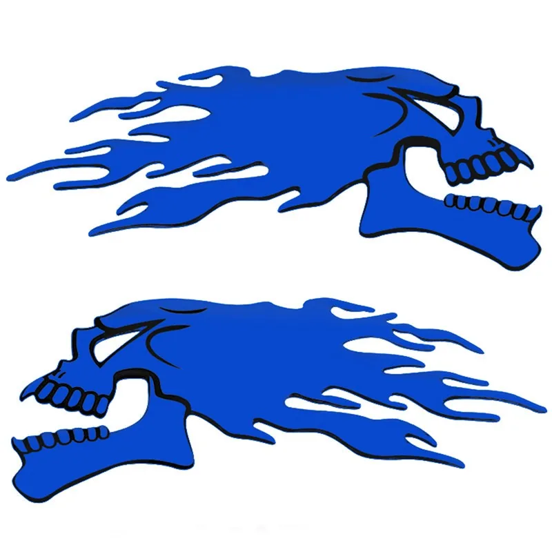 Un ensemble de 2 silver chrome ghost skull head stickers for cars and motorcycles. These 3D decals are great for adding a spooky Halloween theme to your vehicle. They are easy to apply and are perfect for car styling and decoration. The decals are durable and will last a long time on your vehicle. Add a touch of Halloween spirit to your car with these unique and eye-catching stickers.