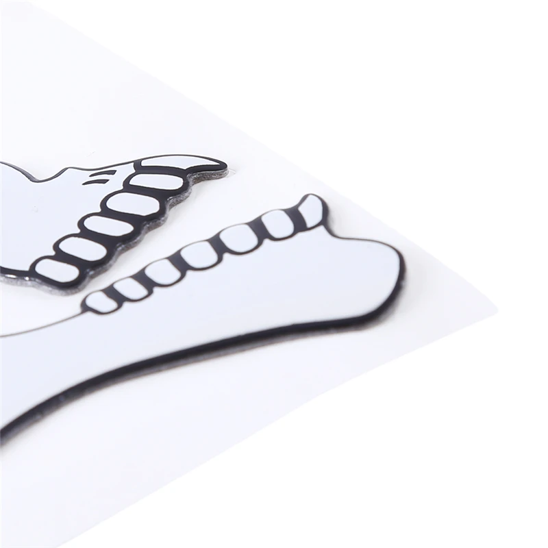 Un ensemble de 2 silver chrome ghost skull head stickers for cars and motorcycles. These 3D decals are great for adding a spooky Halloween theme to your vehicle. They are easy to apply and are perfect for car styling and decoration. The decals are durable and will last a long time on your vehicle. Add a touch of Halloween spirit to your car with these unique and eye-catching stickers.