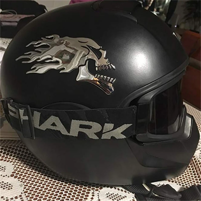 Un ensemble de 2 silver chrome ghost skull head stickers for cars and motorcycles. These 3D decals are great for adding a spooky Halloween theme to your vehicle. They are easy to apply and are perfect for car styling and decoration. The decals are durable and will last a long time on your vehicle. Add a touch of Halloween spirit to your car with these unique and eye-catching stickers.