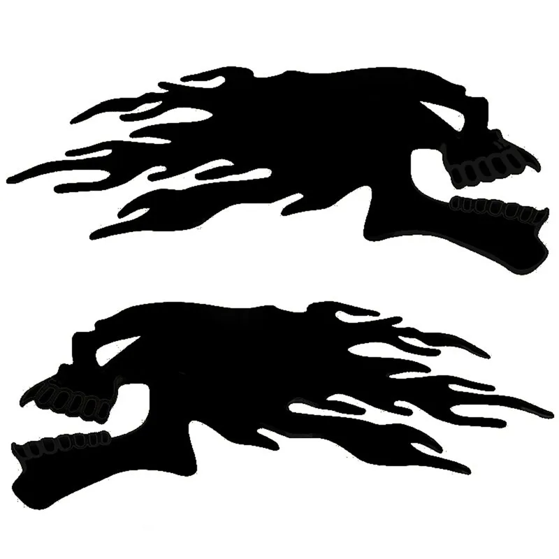 Un ensemble de 2 silver chrome ghost skull head stickers for cars and motorcycles. These 3D decals are great for adding a spooky Halloween theme to your vehicle. They are easy to apply and are perfect for car styling and decoration. The decals are durable and will last a long time on your vehicle. Add a touch of Halloween spirit to your car with these unique and eye-catching stickers.