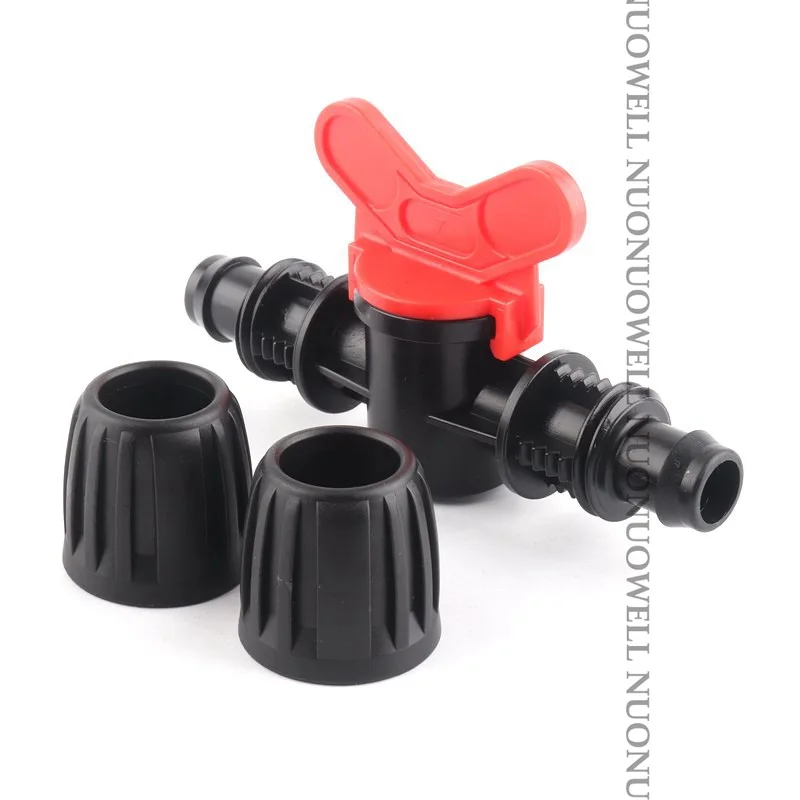 These are two new 16mm HDPE pipe ball valves designed for use in micro irrigation systems. They feature lock nuts for secure installation and are compatible with PE hoses and pipes. These connectors are ideal for garden water systems, providing a reliable way to control the flow of water. The valves are durable and easy to install, making them a convenient solution for connecting hoses and fittings in irrigation setups. Dans l'ensemble, these PE pipe hose joints offer a practical and efficient option for ensuring proper water distribution in gardens.