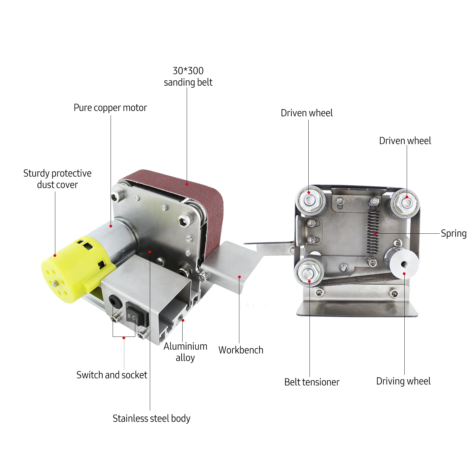 Ceci est une ponceuse à bande multifonctionnelle, mini-portable, bruit bas, facile à installer et à utiliser, est un outil de bricolage à domicile.