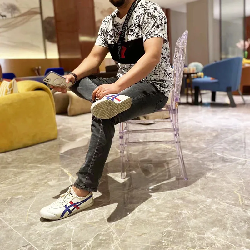 Cette chaise est conçue pour une utilisation générale des adultes. Pour plus de commodité, fourni est une image de référence de taille d'un homme adulte assis sur cette chaise (250Kg, 5'10"). Veuillez consulter l'image des dimensions de ce modèle de chaise pour des mesures supplémentaires.
