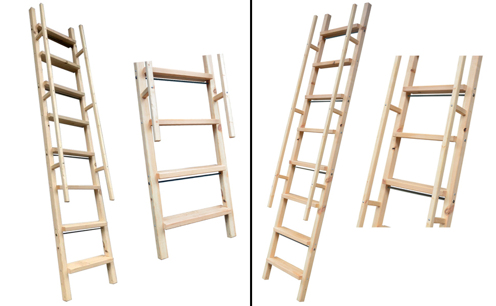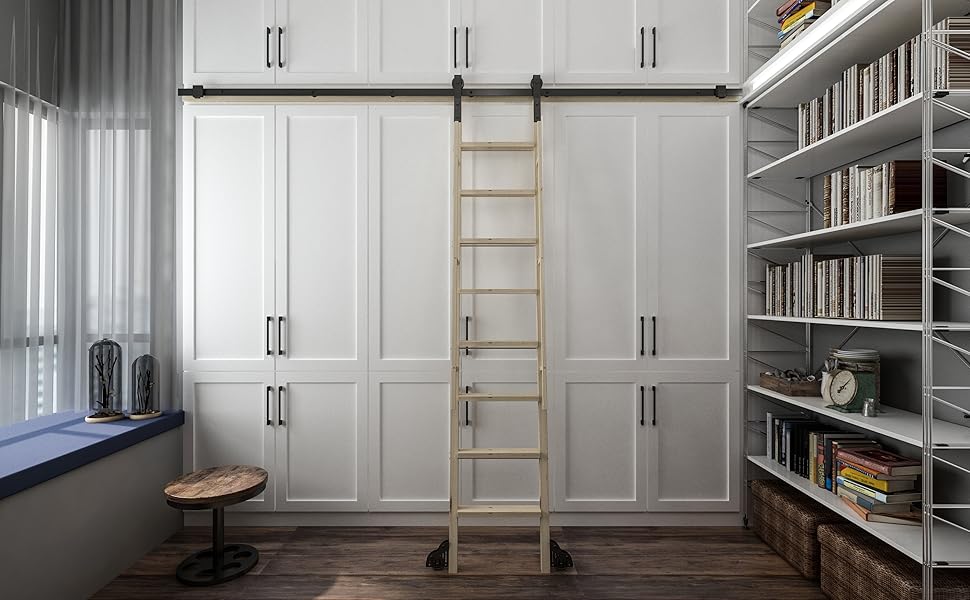 DIYHD Glab Handle Knotty Pine Wood Ladder Sliding Library Roller Ladder,Fit FD Black Track Library Sliding Hardware