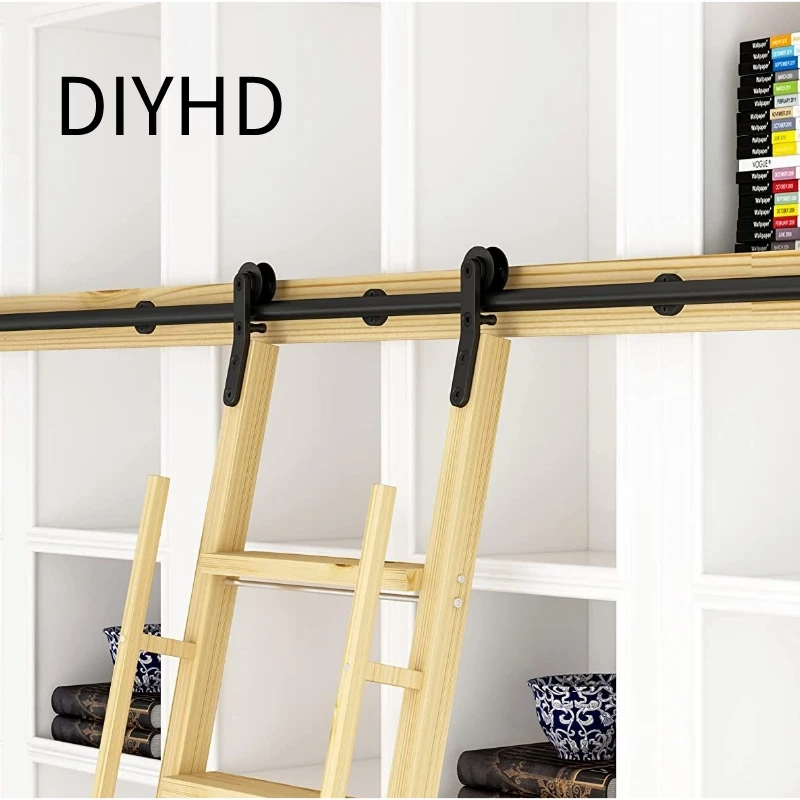 DIYHD Glab Handle Knotty Pine Wood Ladder Sliding Library Roller Ladder,Fit FD Black Track Library Sliding Hardware