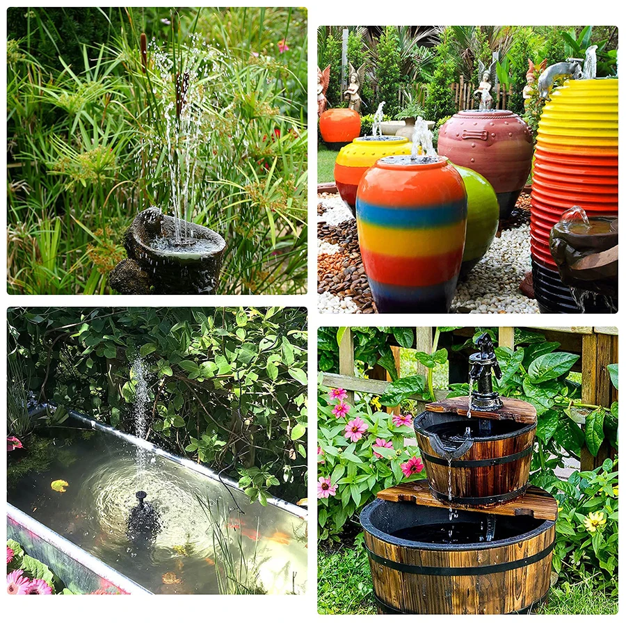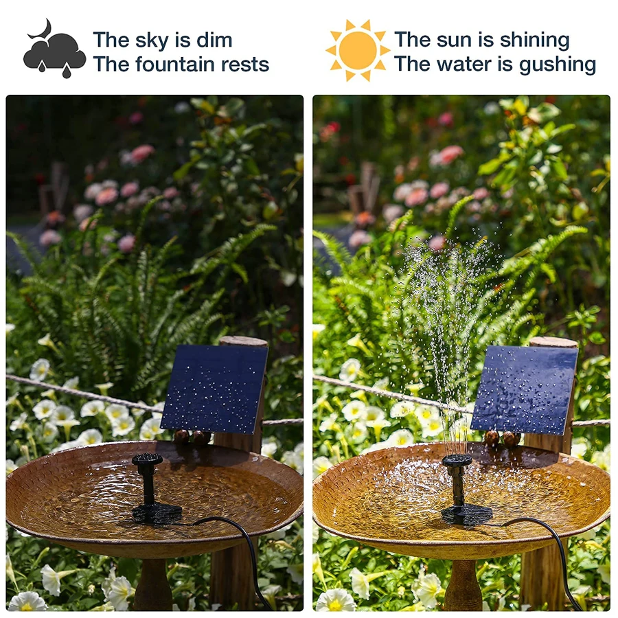 No electric outlets and no battery needed for the solar fountain. This product starts pumping water soon after bright sunlight shines directly on the solar cells. Il est composé d'un panneau solaire très efficace et d'une nouvelle pompe sans balais. It is an energy-saving solar fountain suitable for garden decoration, bird bath, fish bowl, petit étang, circulation de l'eau pour l'oxygène. Installation is simple, facile à utiliser, as long as there is direct sunlight on the solar cells without shadows, water pump will start working in a few seconds. This compact solar-powered pump is easy to assemble and set up all by yourself.