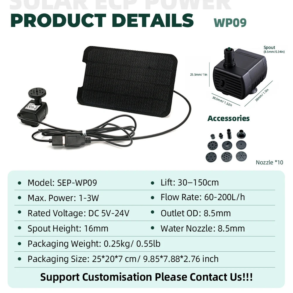 Water height of pump: 100-300mm (if sunlight very bright, it maybe over 500mm)