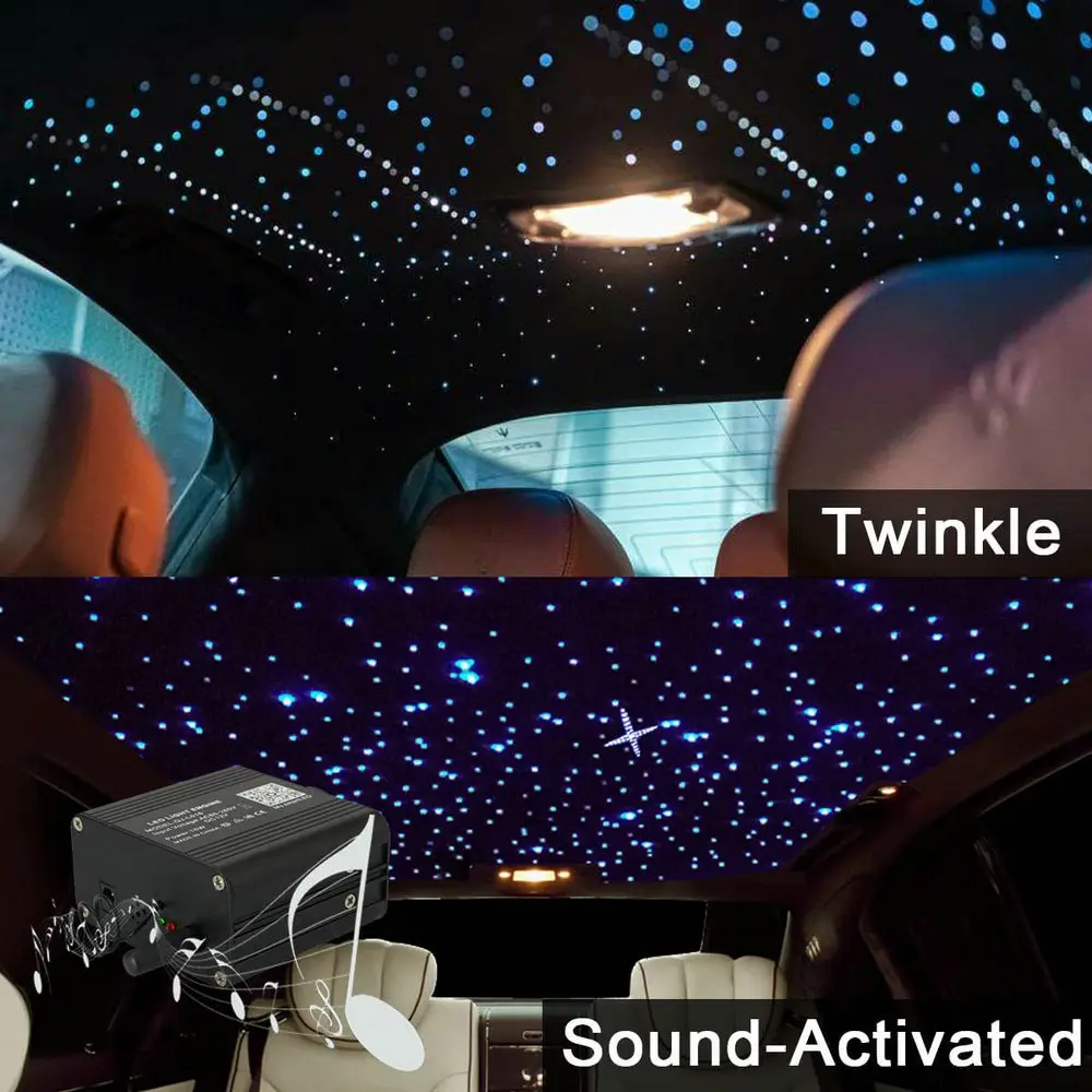 1X16w Twinkle&Sound Activate Fiber Optic Starlight Headliner(PMMA Cable is not included, Si besoin, please visit our store to choose)