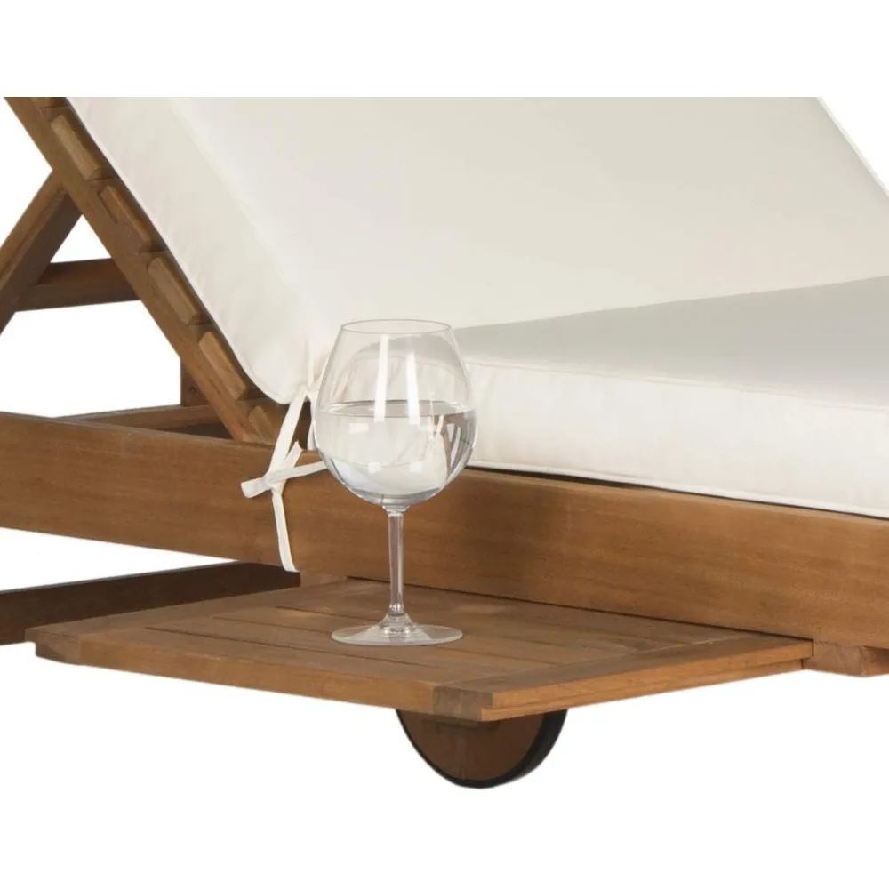 - [PLUSH COMFORT & DURABILITÉ]: Crafted from sturdy natural eucalyptus wood with a plush removable cushion; Built-in side table is perfect for drinks, collations, or any other outdoor essentials