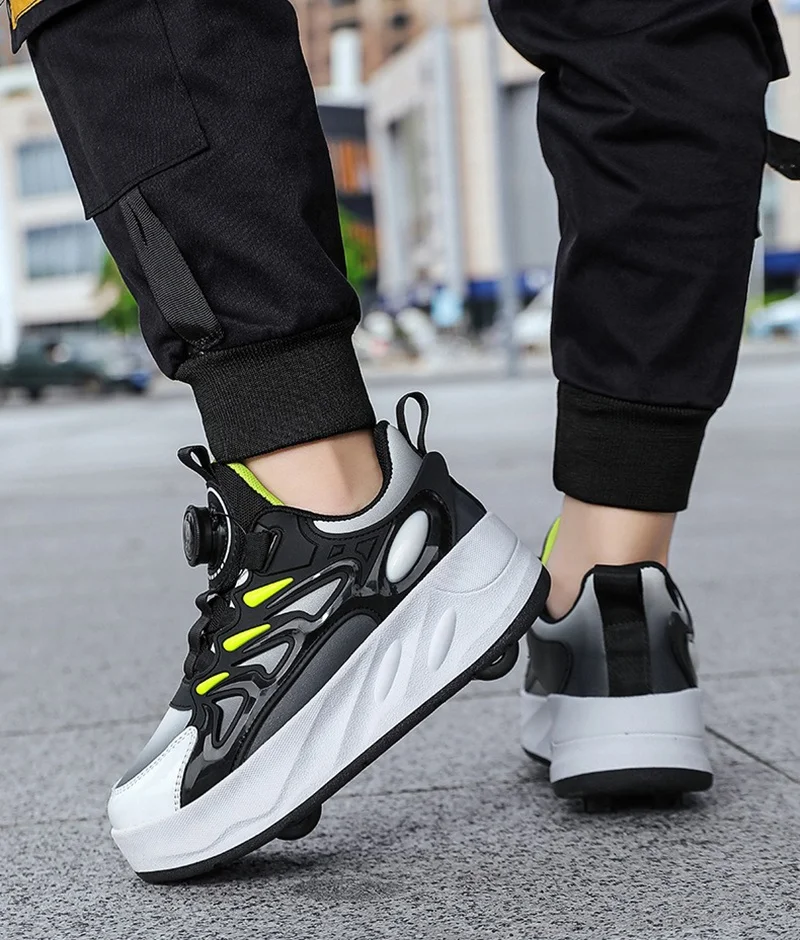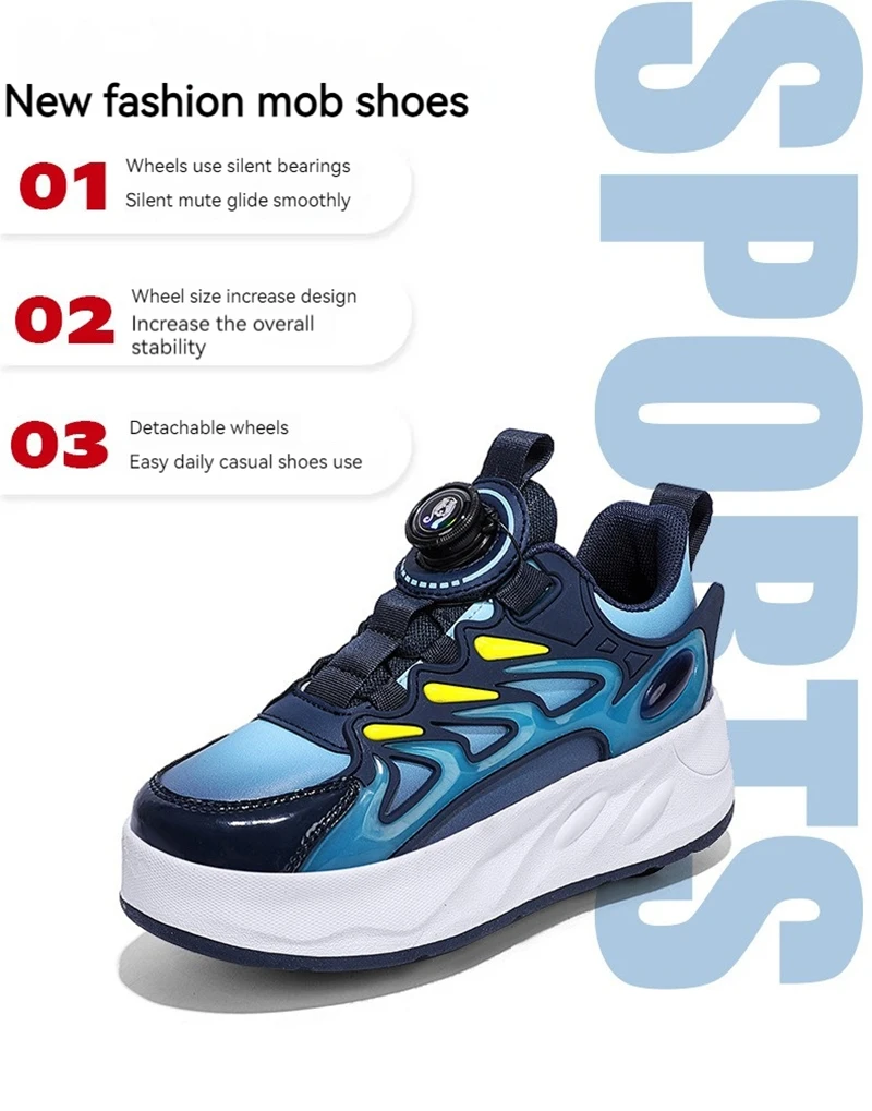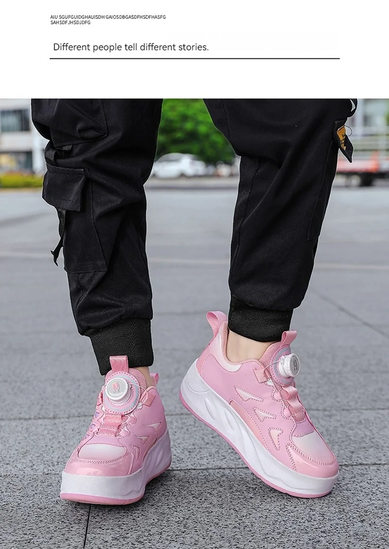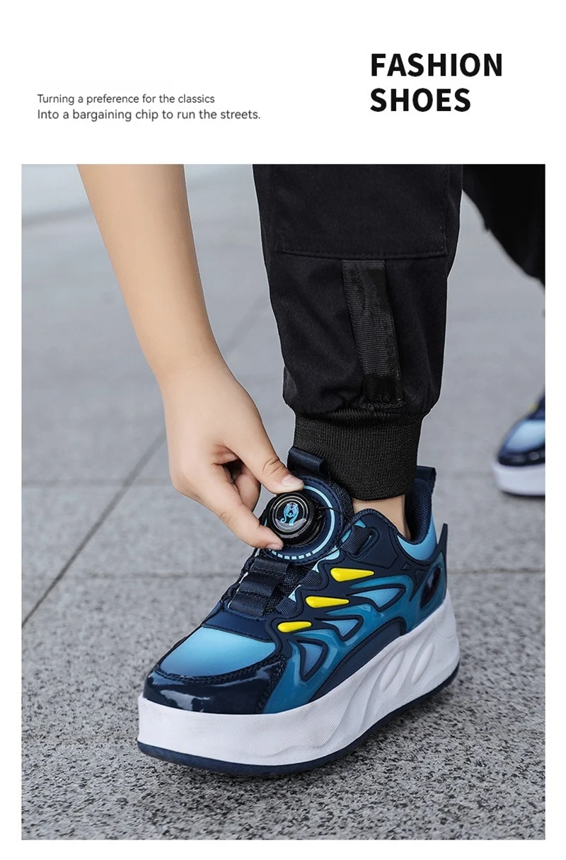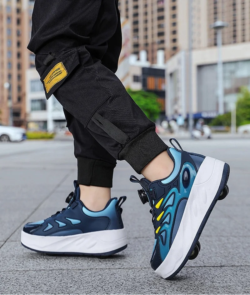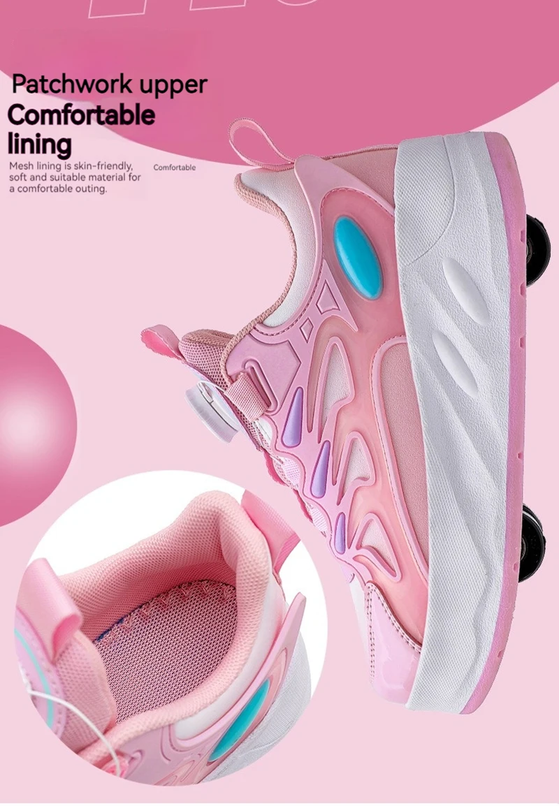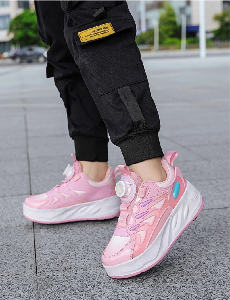 Ces enfants’s roller skates are designed for boys and girls, en vedette 4 wheels for outdoor use. They are professional, occasionnel, and fashionable sports shoes that can also be used for deformation tricks. Perfect for kids who enjoy roller skating and want to take their skills to the next level, these skates offer a fun and active way to play outdoors. The design is versatile and suitable for both beginners and experienced skaters, providing a unique and enjoyable experience for children of all ages.
