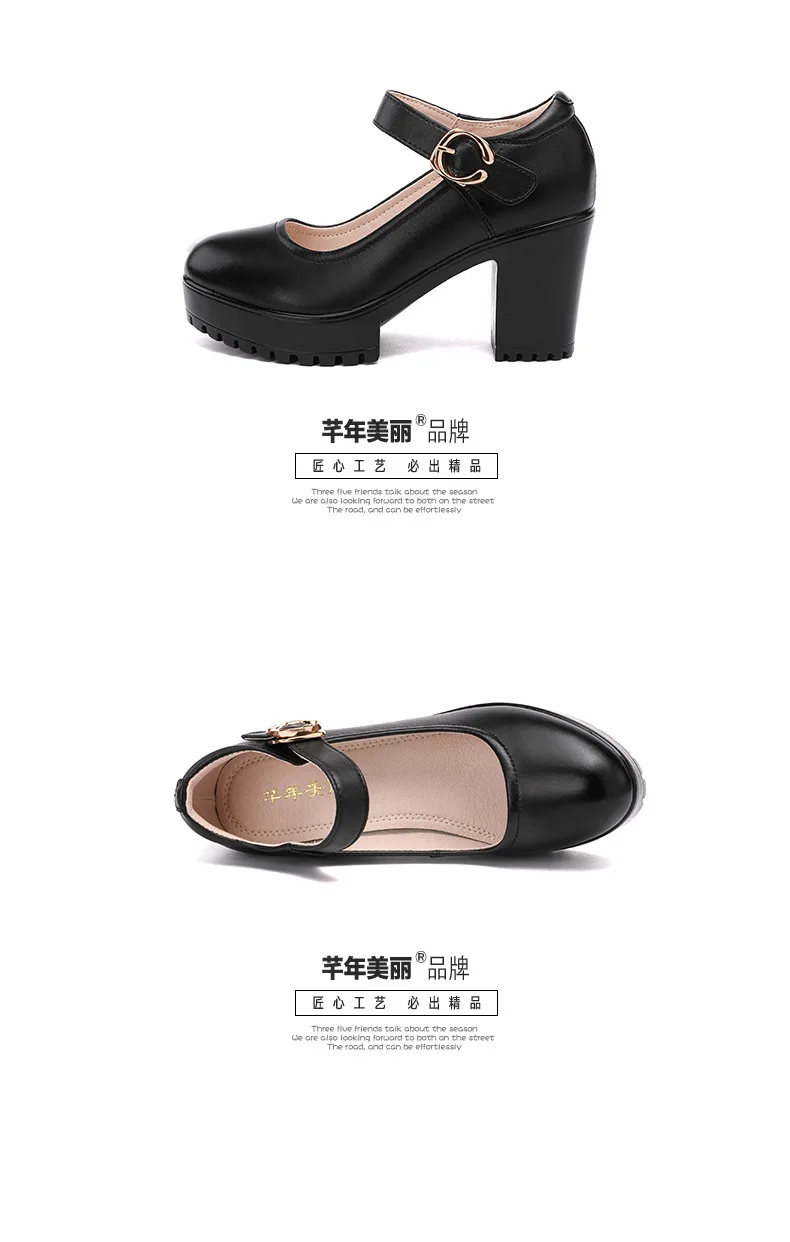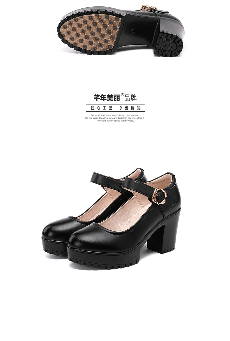 Cowhide High Heels Women’s Platform Round Toe Shallow Mouth Work Shoes