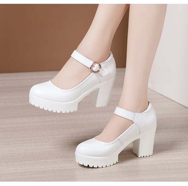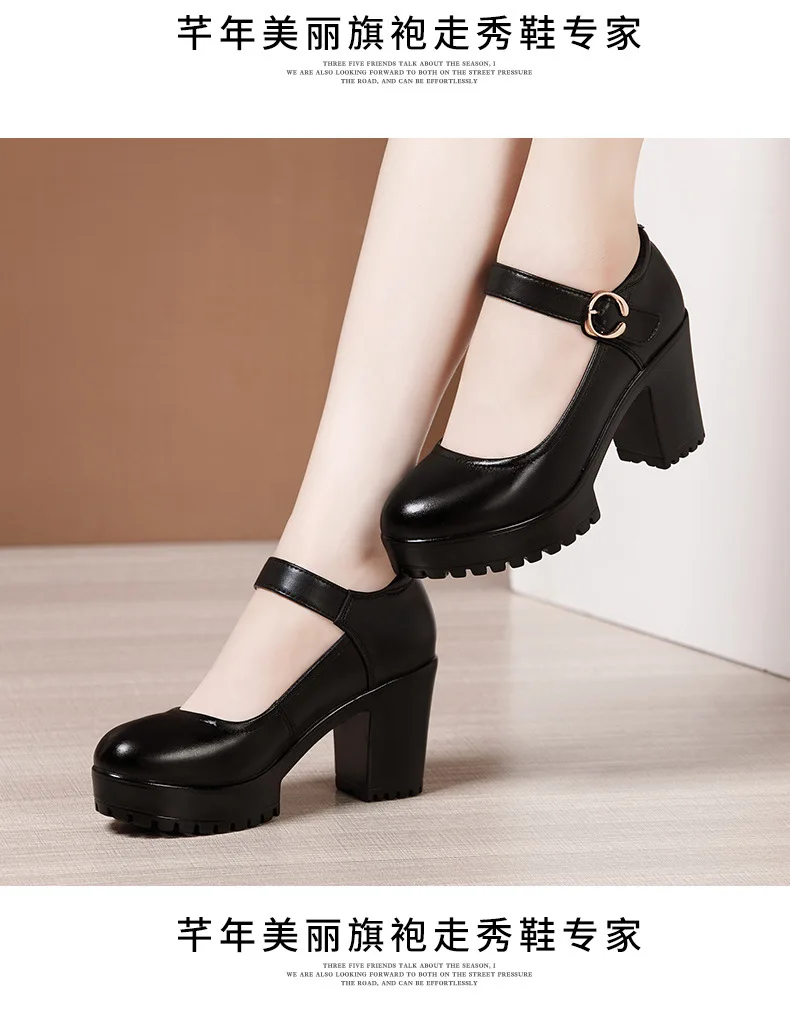 Elevate your work wardrobe with these stylish and comfortable cowhide high heels. The round toe design and shallow mouth make these shoes perfect for all-day wear, while the platform adds a touch of sophistication.