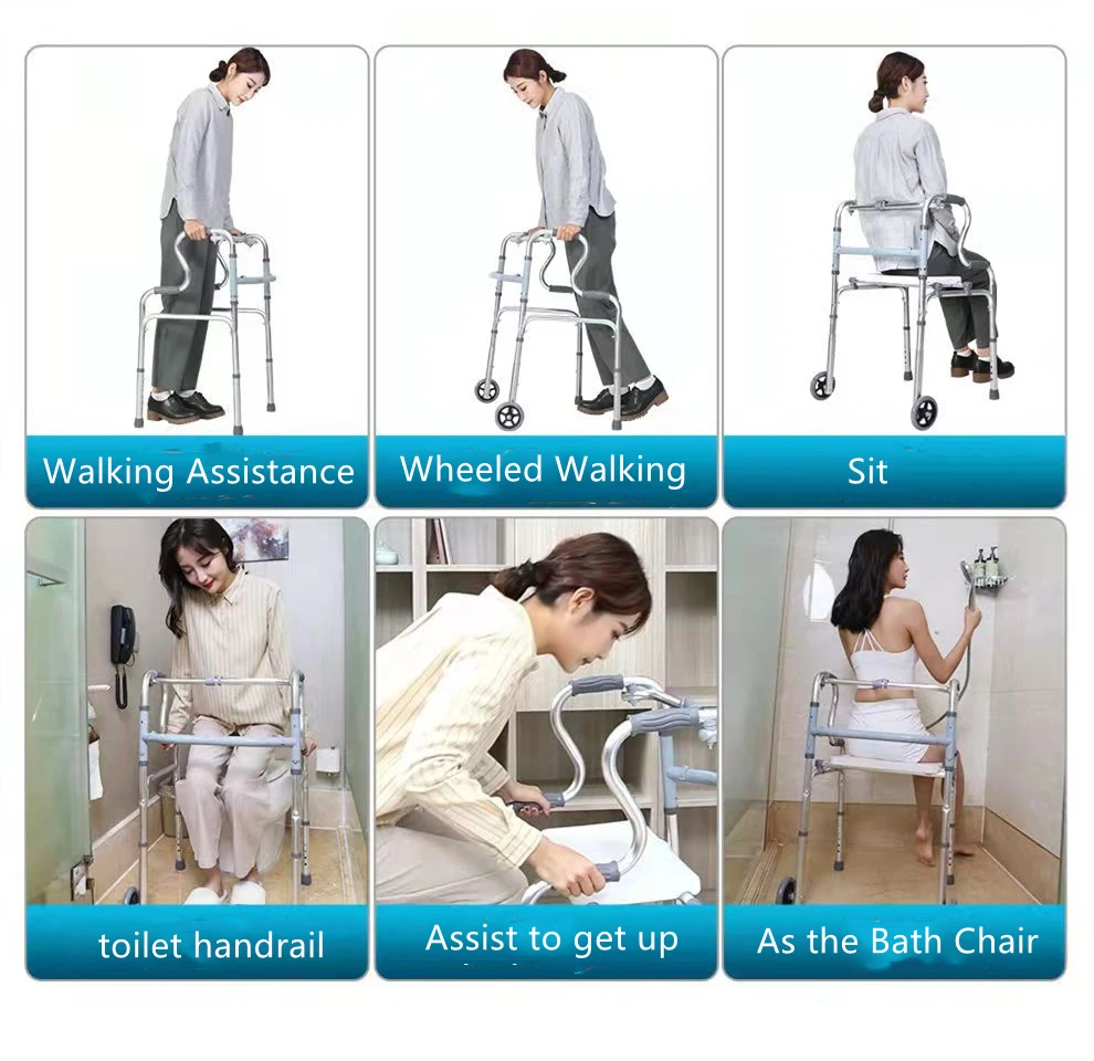 Elderly Rehabilitation Walker Stick Walking Assist Disabled Rollator Foldable Standing Frame For Disabled Mobility Training Tool