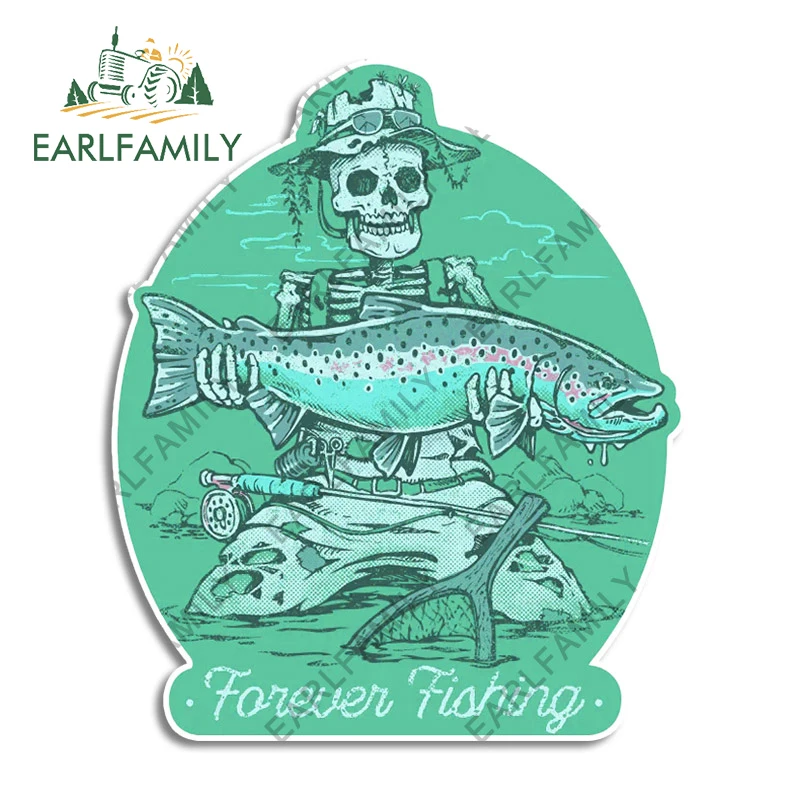 L'autocollant Forever Fishing de 13 cm x 11 cm d'EARLFAMILY est un autocollant pour pare-chocs de voiture de kayak de pêche à la truite arc-en-ciel présentant un art rétro d'un crâne et d'une truite brune.. L'autocollant est idéal pour tout amateur de pêche cherchant à ajouter une touche unique et élégante à son véhicule.. Fait de matériaux de haute qualité, cet autocollant est durable et résistant aux intempéries. Parfait pour montrer votre amour pour la pêche lors de vos déplacements.