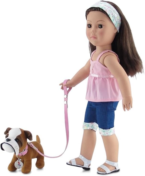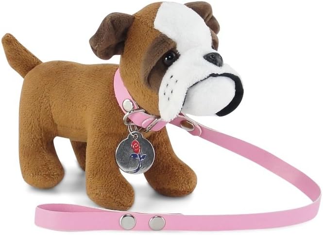DESCRIPTION DES FONCTIONS: Emily Rose super mignonne 18″ poupée peluche bouledogue chiot / jouet pour chien avec laisse en simili cuir rose amovible, collier pour chien amovible assorti et superbe plaque d'identité en métal avec notre logo floral Emily Rose.