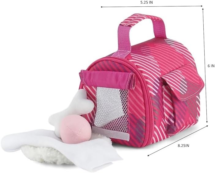 DESCRIPTION DES FONCTIONS: 18″ accessoire de poupée, chiot en peluche, animal de compagnie livré avec’son propre sac de transport pour animaux de compagnie de taille parfaite! Joli sac de transport pour animaux à motif rose comprenant un lit pour chiot moelleux., couverture, une balle jouet en os et amusante, et est facile à nettoyer, essuyez-le simplement!
