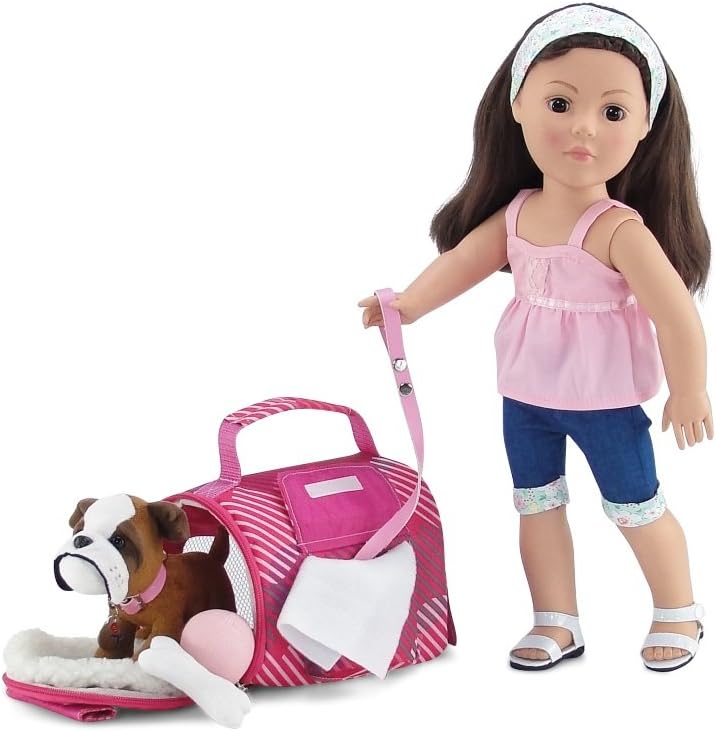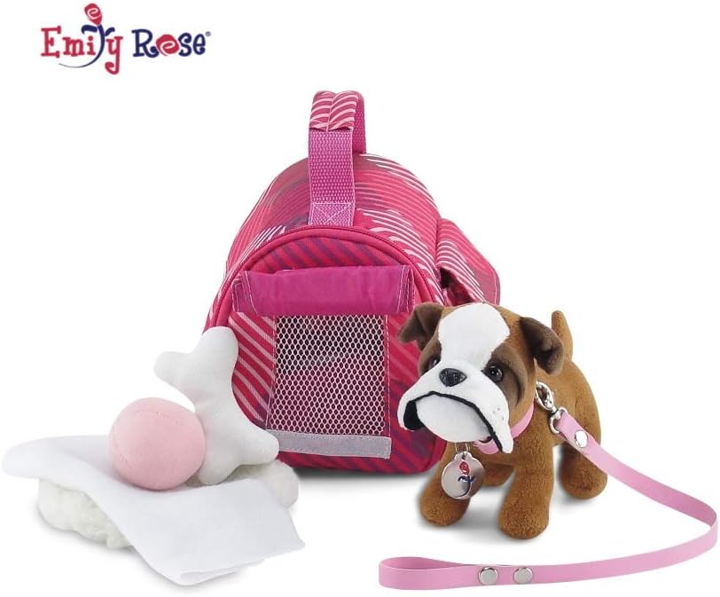 Emilie Rose 18″ Poupée Bull Dog Chiot et Transporteur