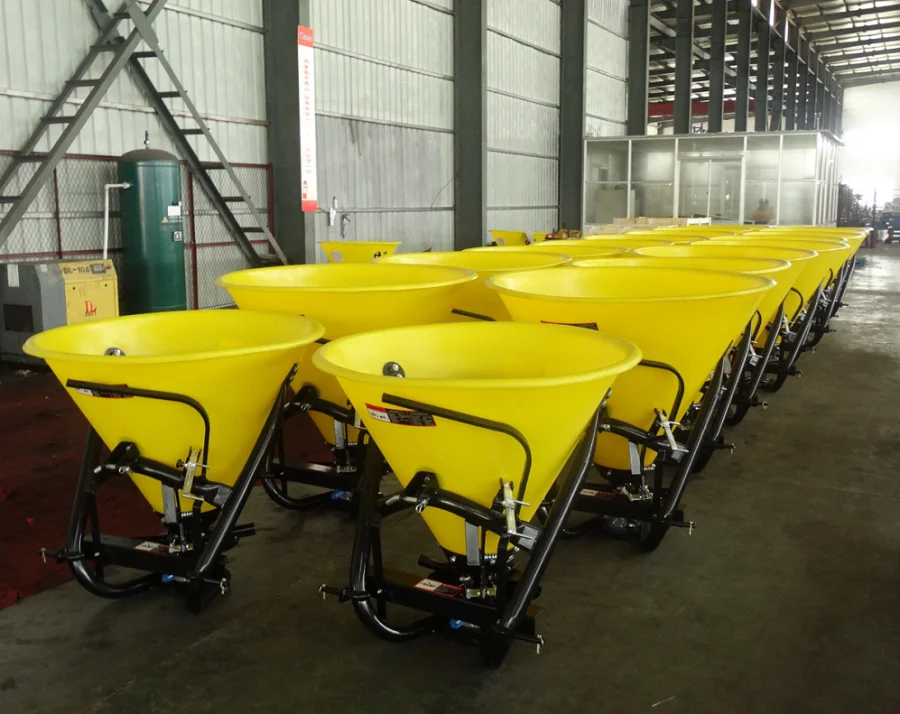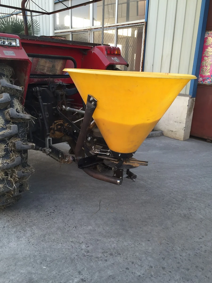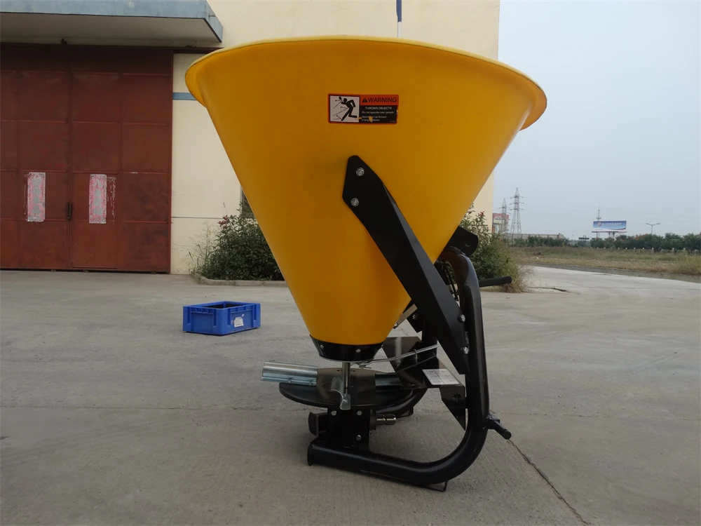 A farm seed spreader fertilizer machine is a tractor-mounted 3-point spreader designed for spreading fertilizer, sel, et le sable. This machine can be easily attached to a tractor for efficient spreading of seeds and fertilizers on farm fields. It is equipped with a mechanism that evenly spreads the materials across the field, helping to promote healthy plant growth. The spreader is durable and versatile, making it a useful tool for farmers looking to improve their crop yield and soil health.
