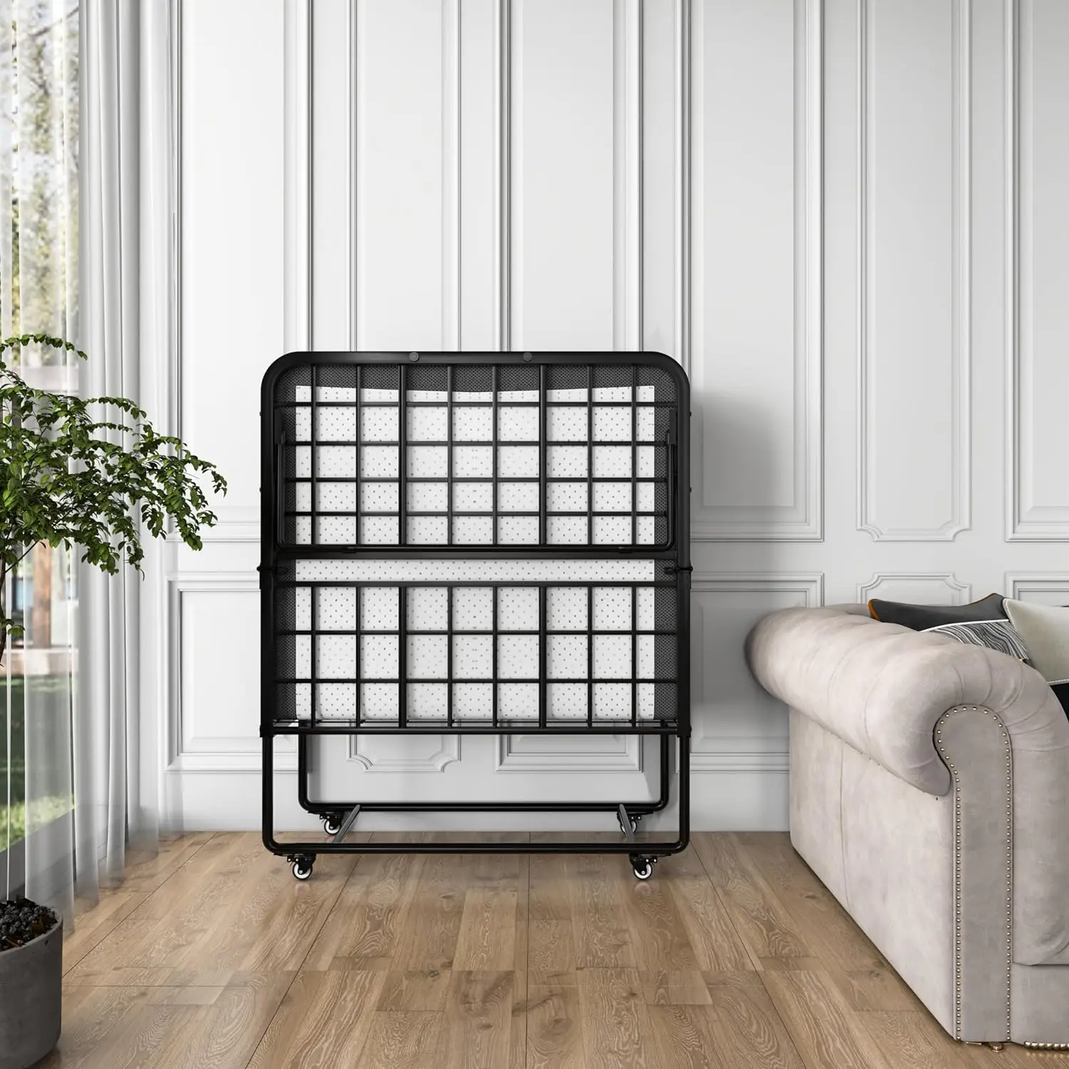 - 【Say Goodbye to Flimsy Bed Frames】The standard Twin size of 75″ X 39″ makes the sleep less crowded and there are more mattresses to match. The bed frame has baffles on the left and right sides to prevent the mattress from moving. The bottom of the guest bed has multiple load-bearing strips horizontally and vertically, making the rollaway bed strong enough to hold up to 450 livres sterling.