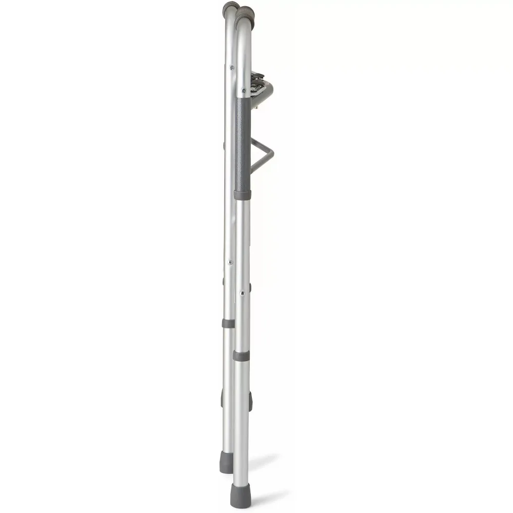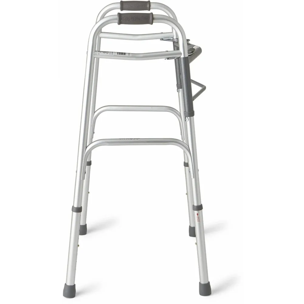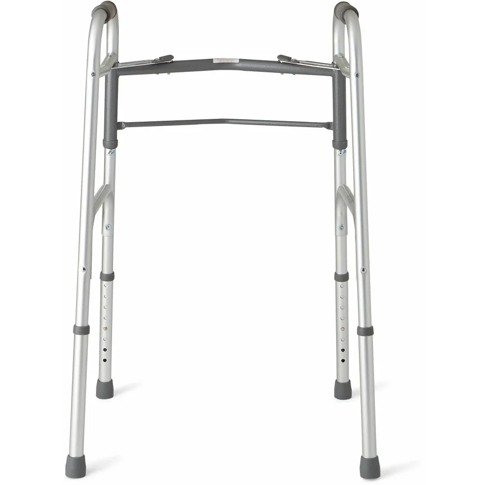 Restez mobile avec le déambulateur pliable Medline Deluxe à 2 boutons. Il est idéal pour les personnes âgées ainsi que pour celles qui se remettent d'une blessure.. Le déambulateur pliable léger supporte jusqu'à 300 kg. C'est utile si vous avez des problèmes d'équilibre ou si vous êtes sujet aux chutes.. Les aides à la mobilité comme celle-ci vous permettent de mettre plus de poids sur vos bras plutôt que sur vos jambes.. Cela peut être utile si vous ressentez des douleurs articulaires ou une faiblesse musculaire des jambes.. Cette unité est également conçue pour vous aider à rester actif, et peut être utilisé à la maison ou dans des lieux publics. Le poids léger, la conception pliable facilite le déplacement et le rangement. Ce déambulateur pliable dispose également de pieds réglables en hauteur qui s'adaptent à un large éventail d'utilisateurs.. Utilisez-le pour éliminer le sentiment d'être vulnérable lorsque vous vous déplacez d'un endroit à l'autre. Retrouvez votre liberté avec le déambulateur pliable Medline Deluxe à 2 boutons.