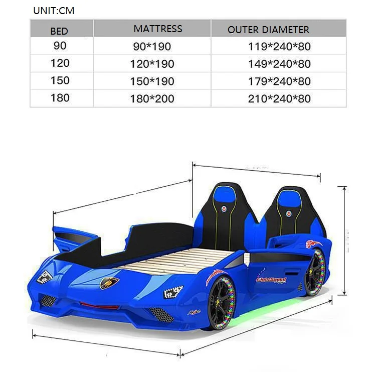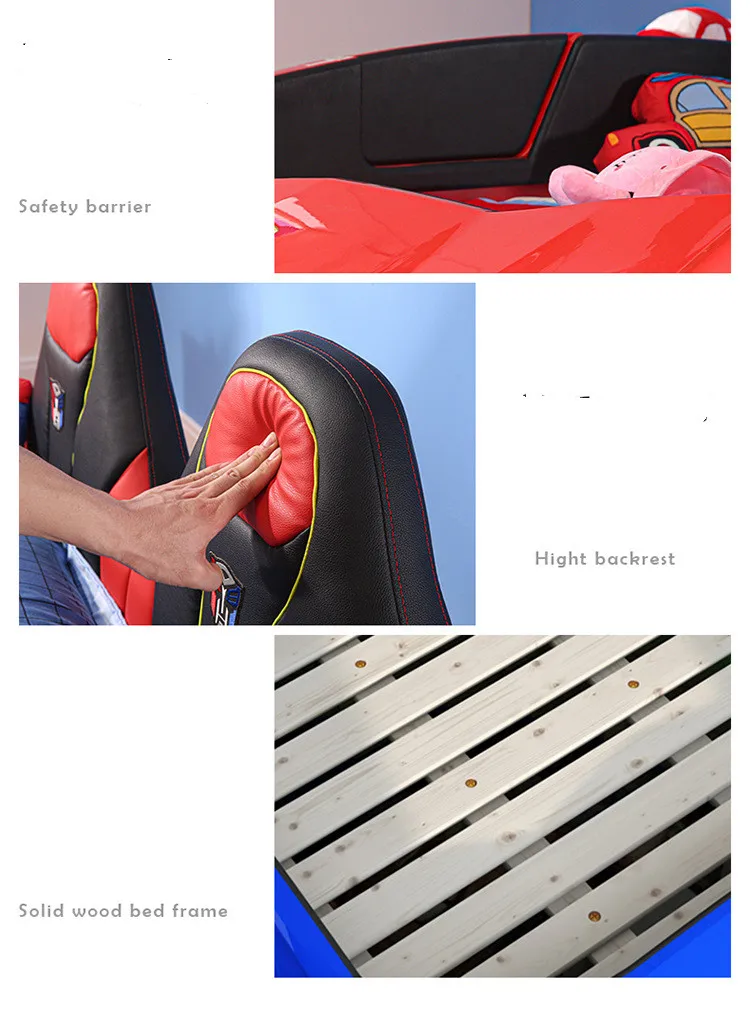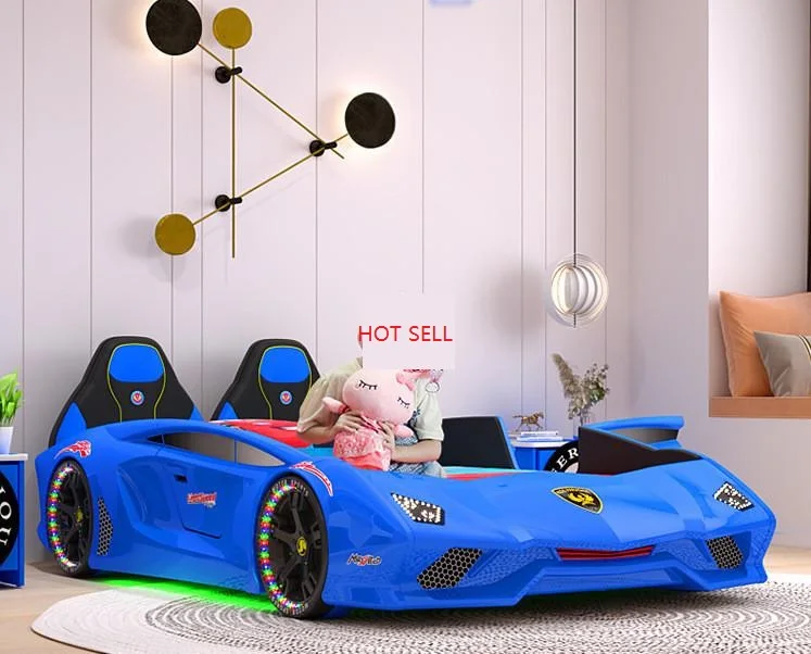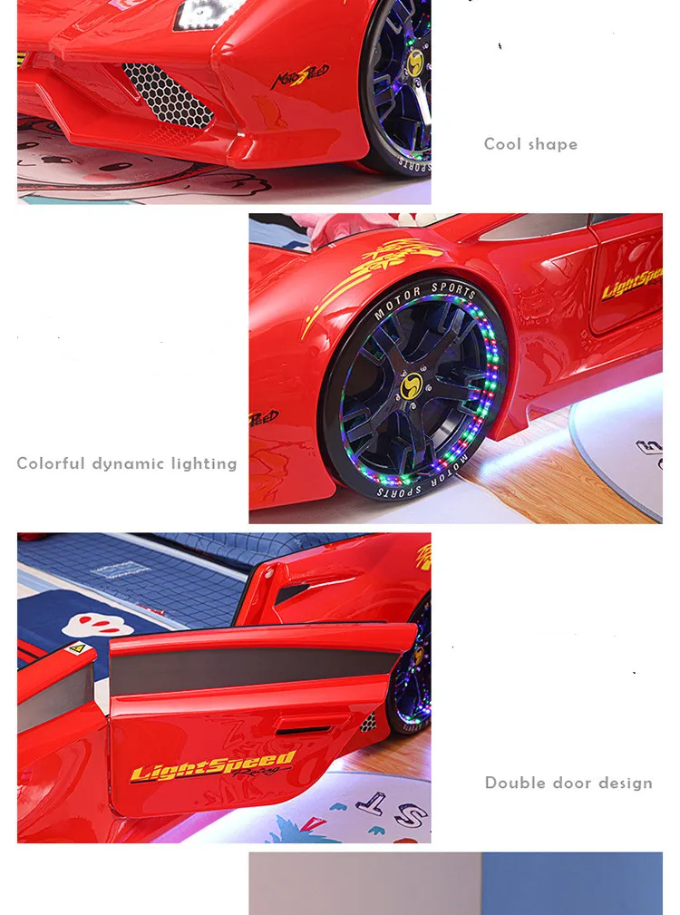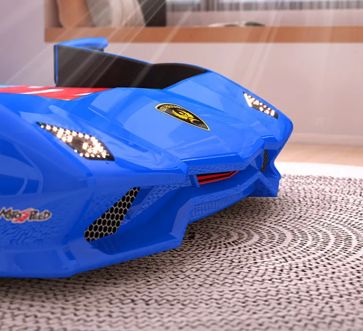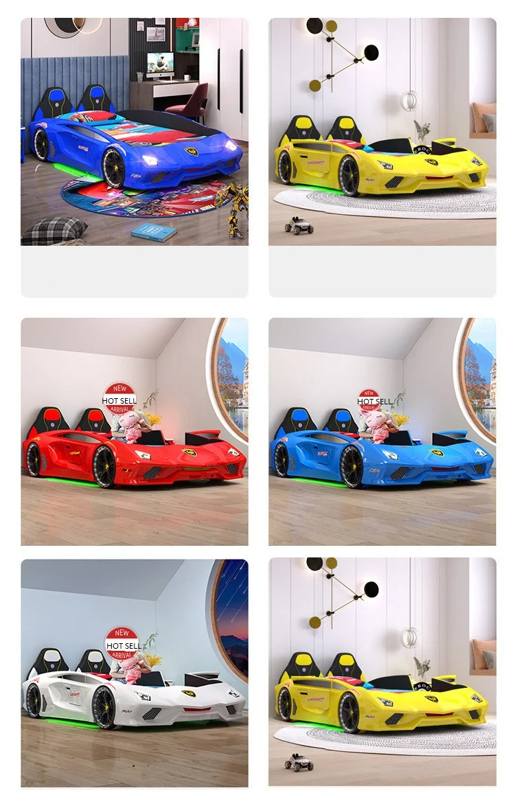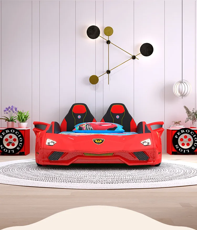 « Turn your child’s bedroom into a luxurious dreamland with our full-size luxury car bed. Crafted from sturdy solid wood and fine ABS materials, this bed is not only stylish but also built to last. The colorful LED lights add a touch of fun and ambiance to the room, creating a cozy and inviting atmosphere for your little one to relax and sleep in. Your child will love the sleek design and realistic car details, making bedtime an exciting experience every night. Give your child the ultimate sleep experience with our full-size luxury car bed. »