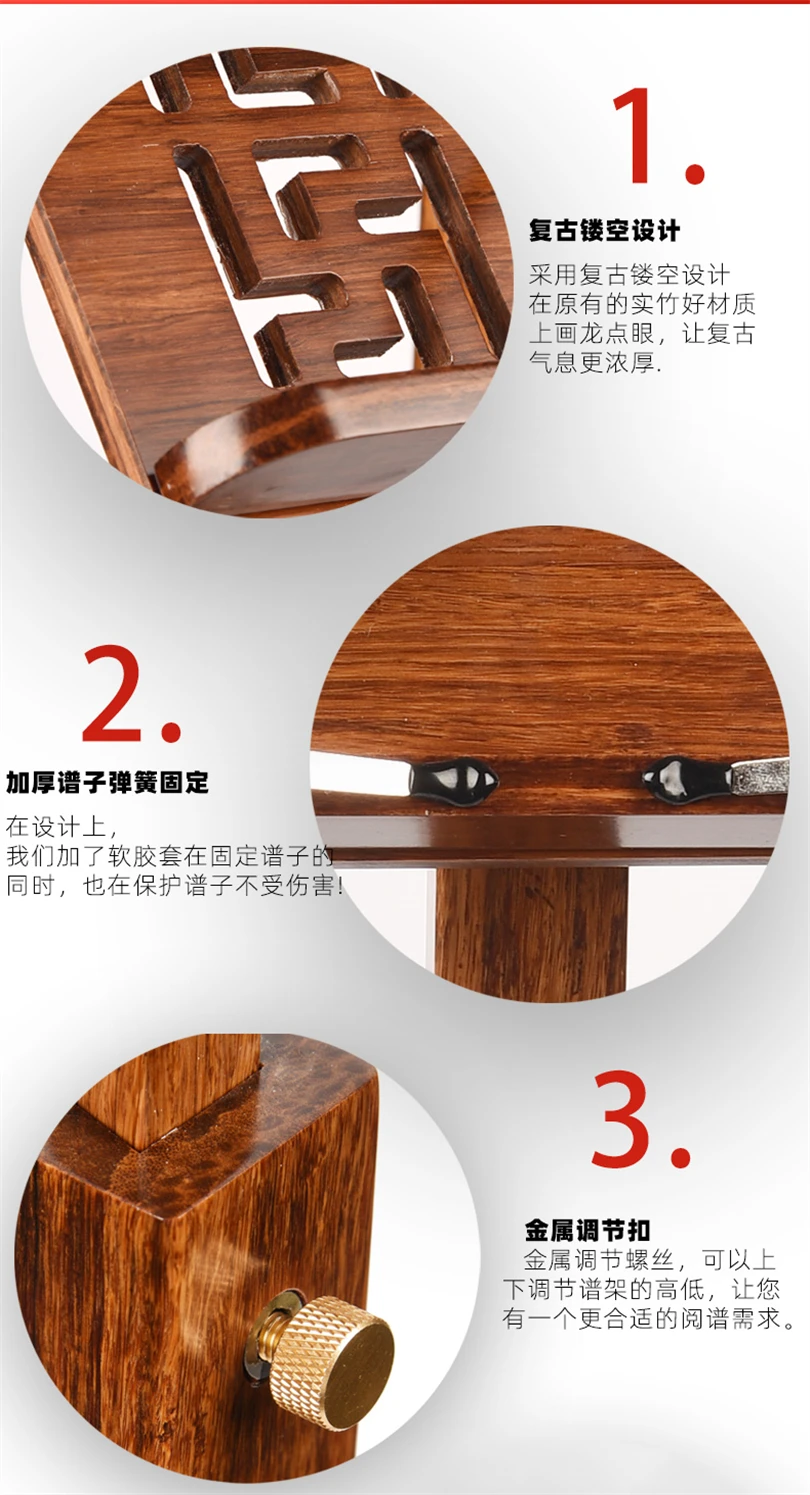 Le pupitre Guzheng est un pupitre portable et réglable fabriqué à partir de bois de bambou massif. Ce support robuste et durable est parfait pour tenir votre partition guzheng pendant que vous jouez. La conception de levage vous permet d'ajuster facilement la hauteur à la position parfaite pour votre confort. Que vous soyez musicien professionnel ou débutant, ce pupitre est un accessoire indispensable pour votre expérience de jeu de guzheng. Obtenez le vôtre aujourd'hui et améliorez votre pratique musicale!