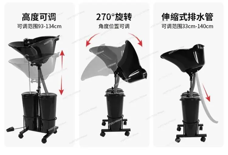 Salon de coiffure verticale double baril électrique avec pompe à eau bassin de shampooing portable mobile de coiffeur universel pour le salon enceinte