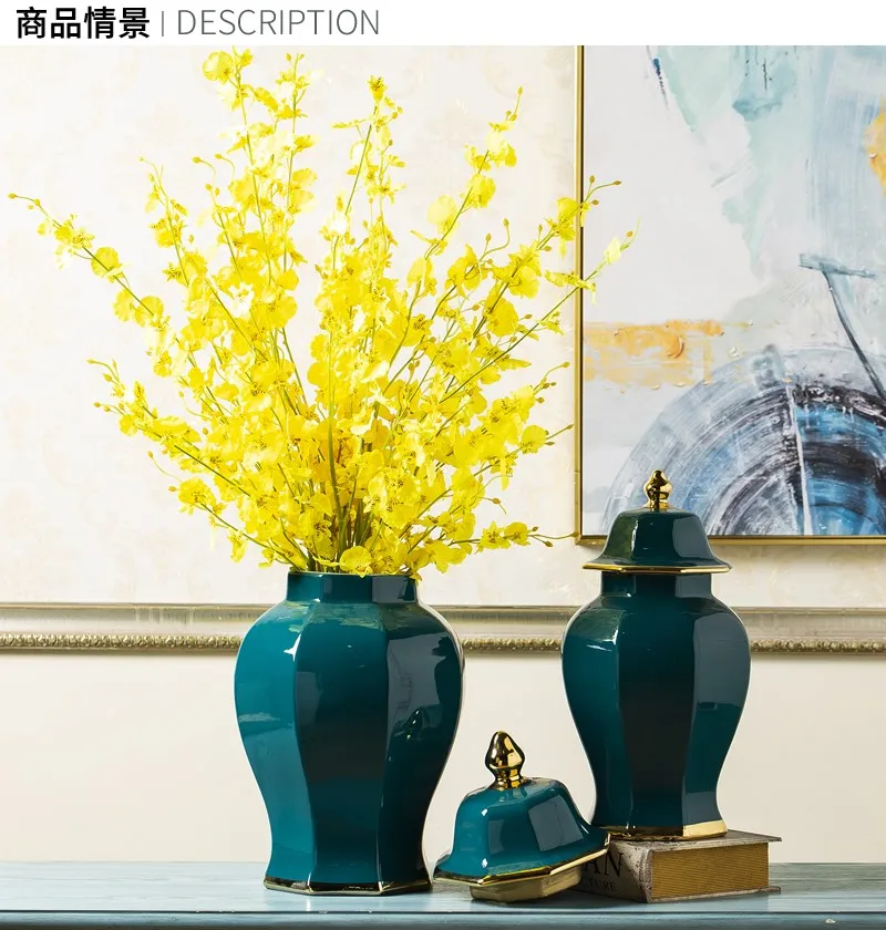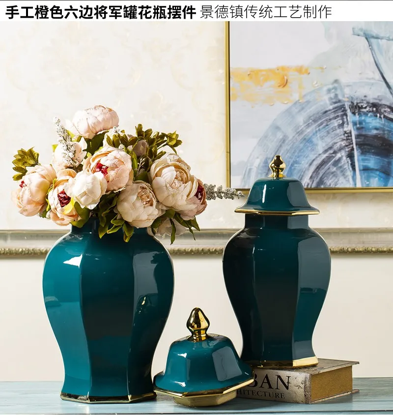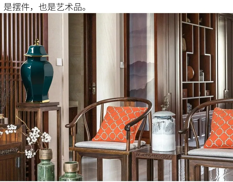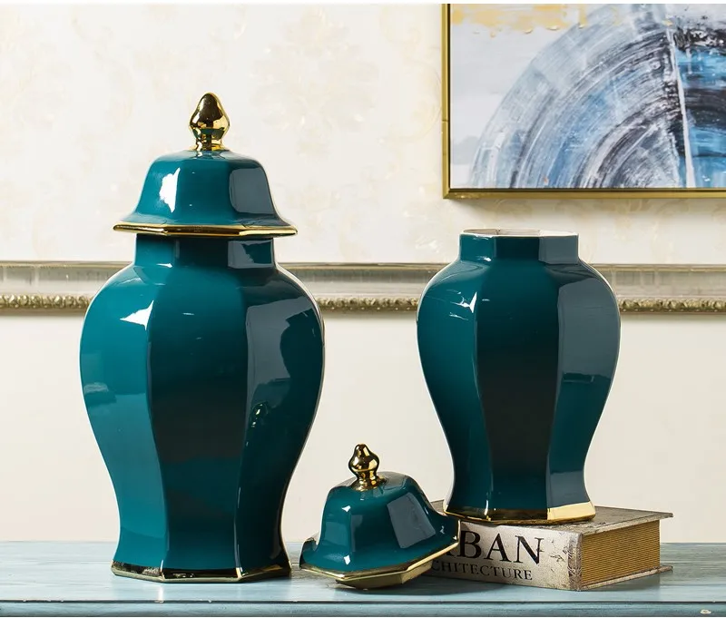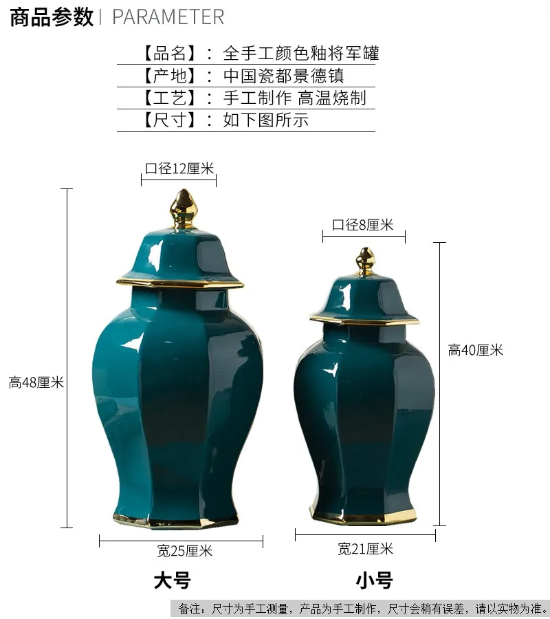 This content describes a hot sale handcrafted porcelain ginger jar with a blue glaze, high temperature fired for durability. It is suitable for use as home or hotel decor, and can be used as a ceramic temple jar or vase. The item is artfully crafted and designed to be a unique addition to any space.