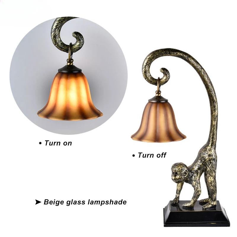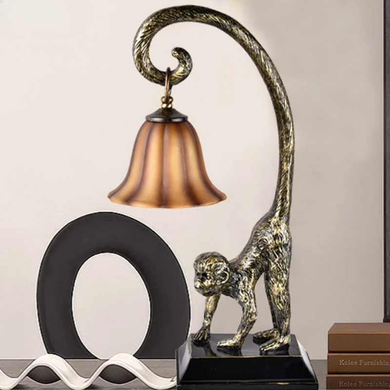 Lampe de table de singe décorative intérieure avec nuance en verre