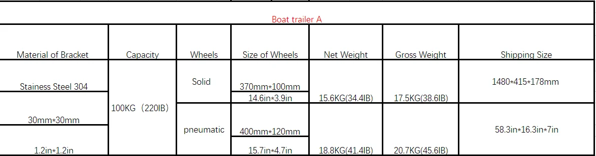 Produit des roues de lancement de bateaux pneumatiques, Chariot de bateau, Opti Dolly, produits en acier inoxydable et en alliage d'aluminium.