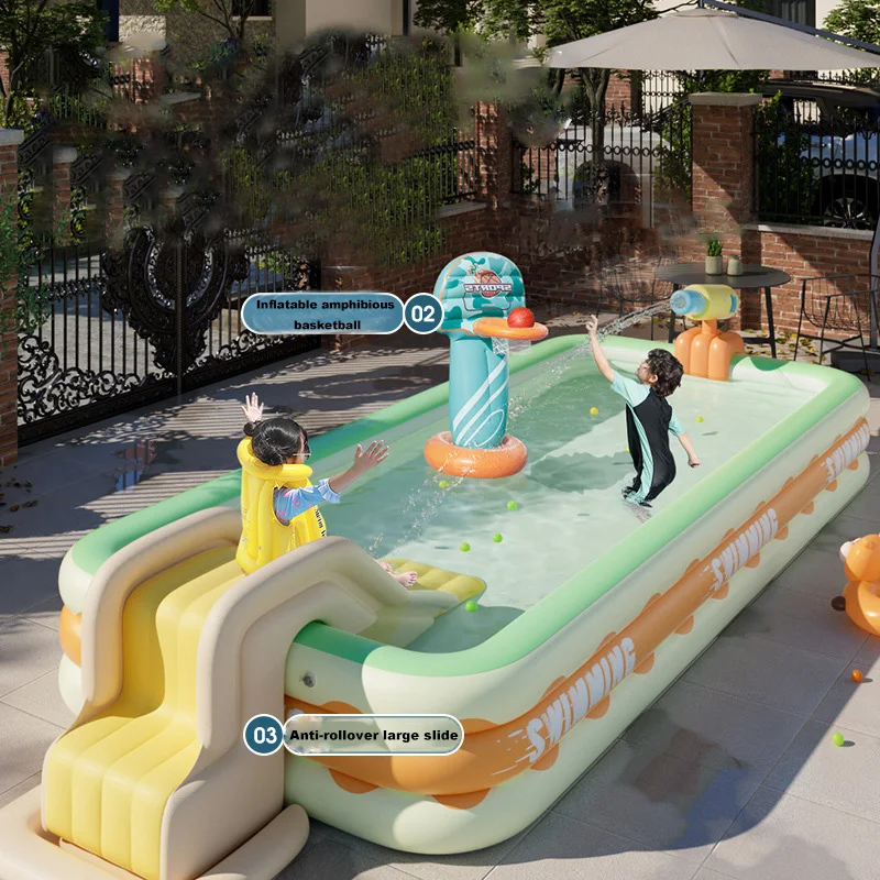 Introducing our premium Inflatable PVC Multi-Functional Swimming Pool, designed for all-day family fun in the sun. This spacious pool is made from high-quality PVC material that is both durable and anti-rollover, ensuring a safe and secure swimming environment for all ages.
