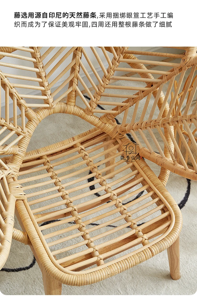 Japanese-Style Natural Rattan Flower Chair Living Room Rattan Sofa Pea…