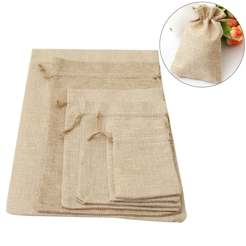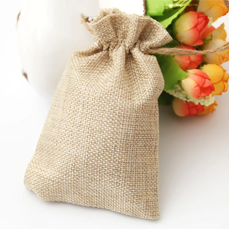 These drawstring gift bags are made from jute, coton, and linen and are suitable for packing candy, bijoux, et autres petits articles. They are perfect for use as wedding favors or for Christmas gift packaging. The natural burlap material gives a rustic and vintage look to the pouches, making them a popular choice for various occasions. The drawstring closure ensures items are securely stored, while also adding a decorative touch. These bags are versatile and can be used for storing and organizing jewelry or other small accessories.